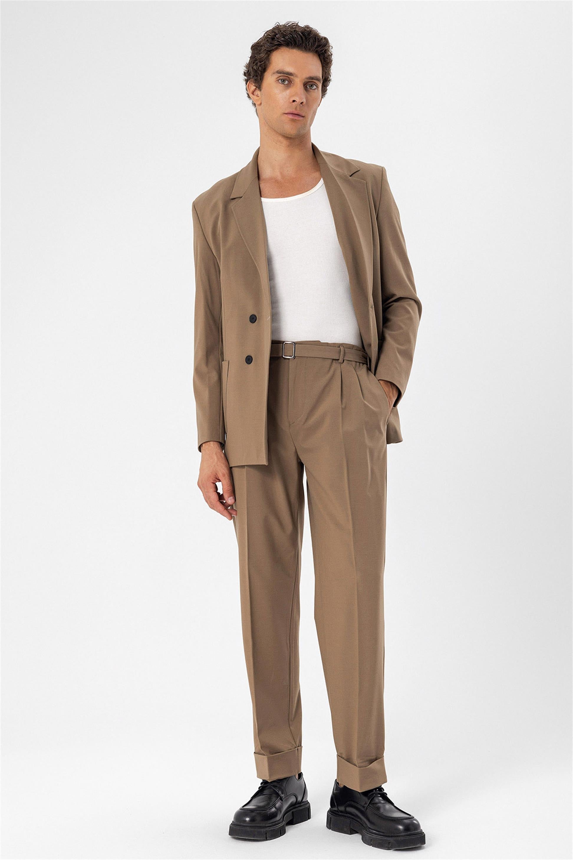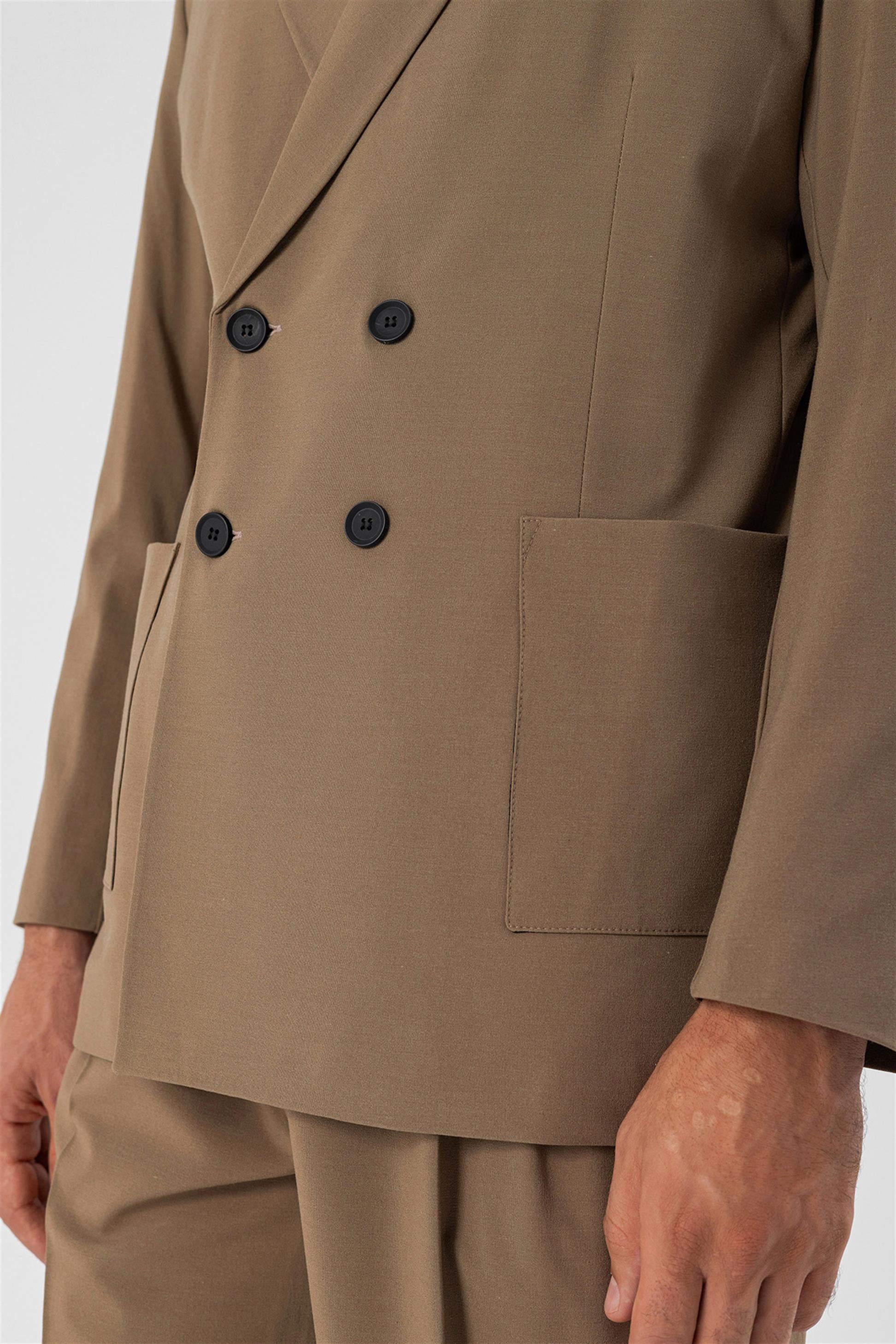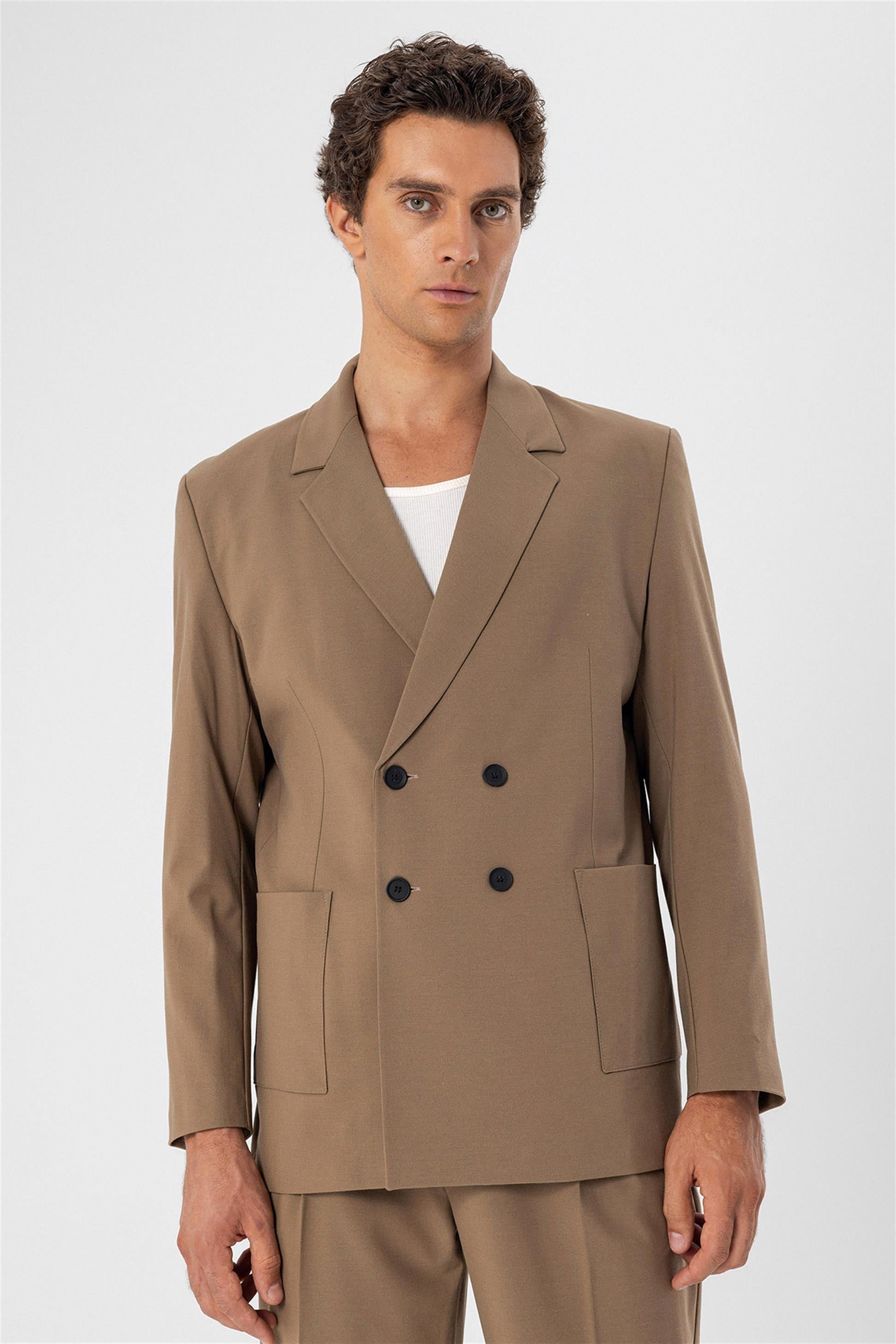 Men's Camel Double Breasted Blazer Jacket...