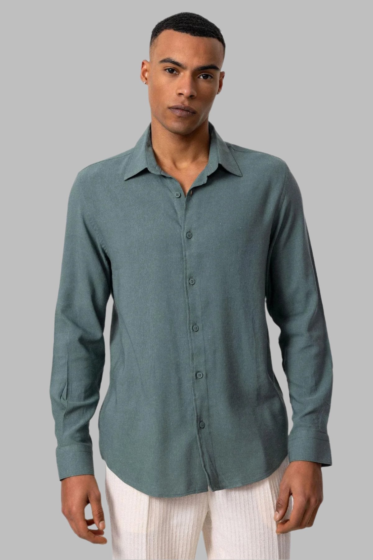 Men's Dark Khaki Long-Sleeve Linen Shirt