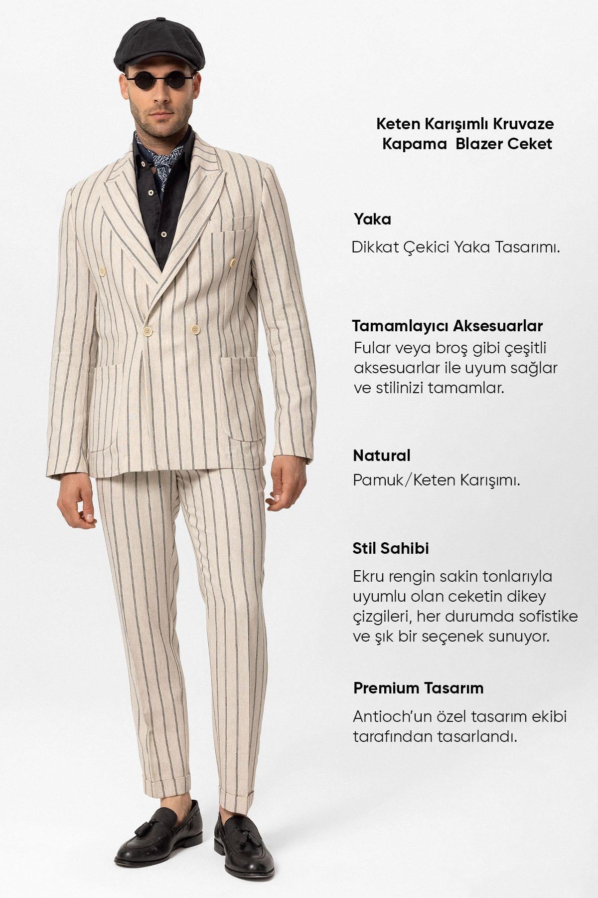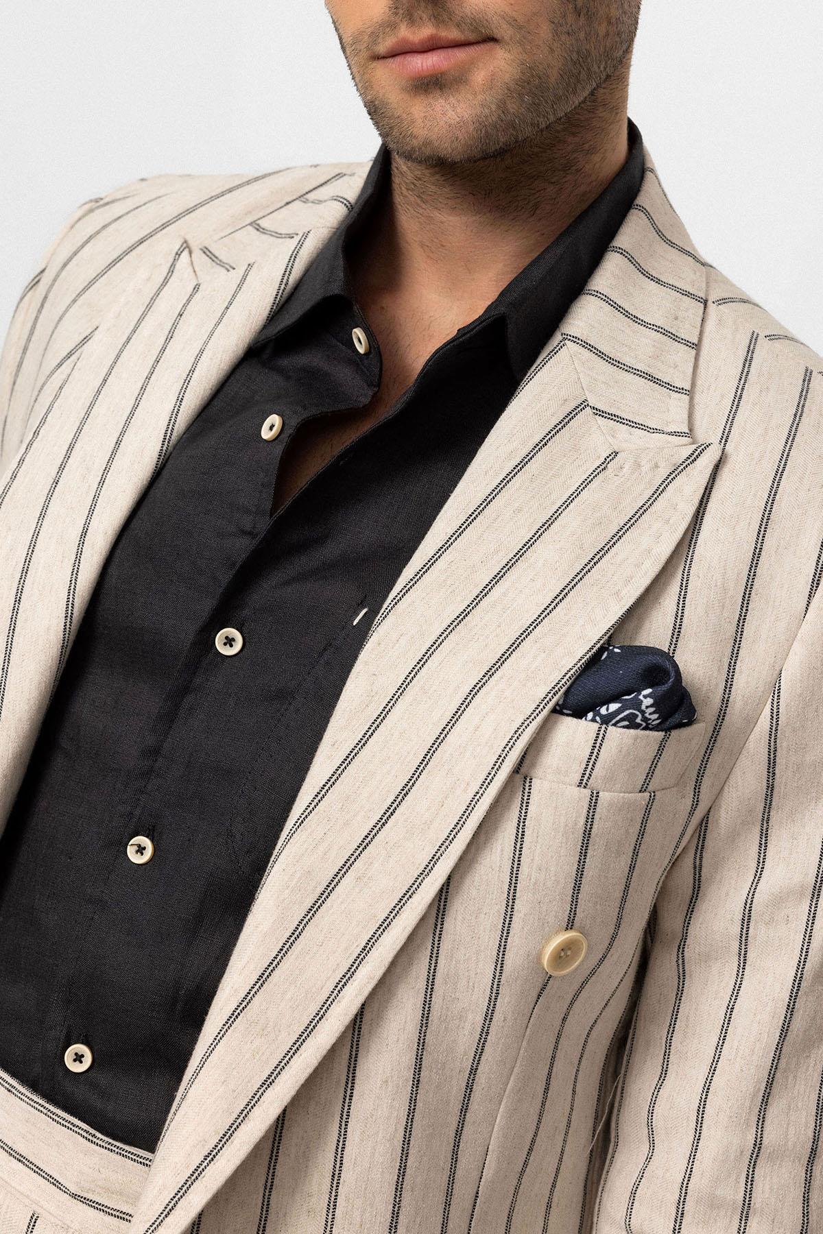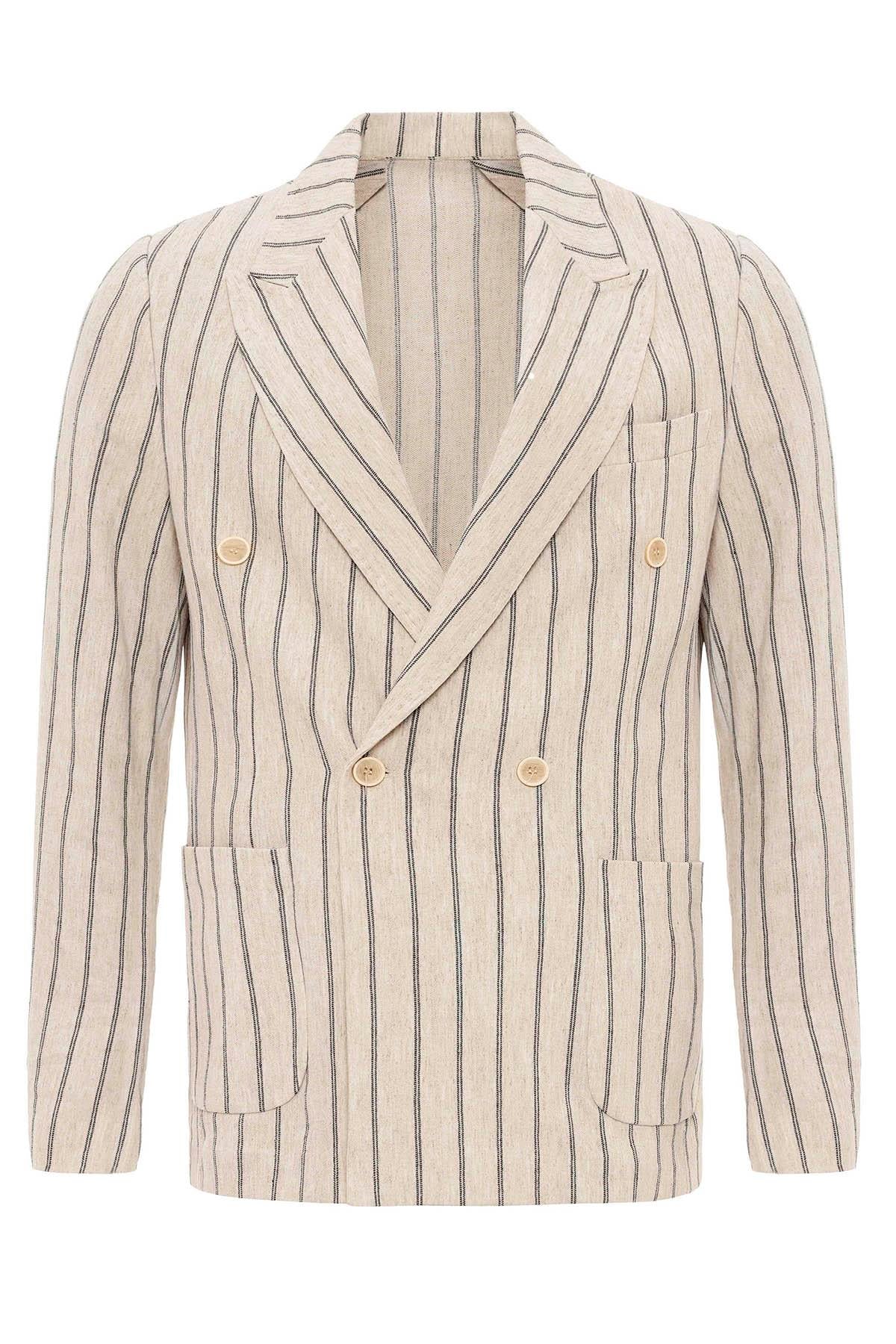 Men's Ecru-Black Linen Blend Double-Breasted Jacket
