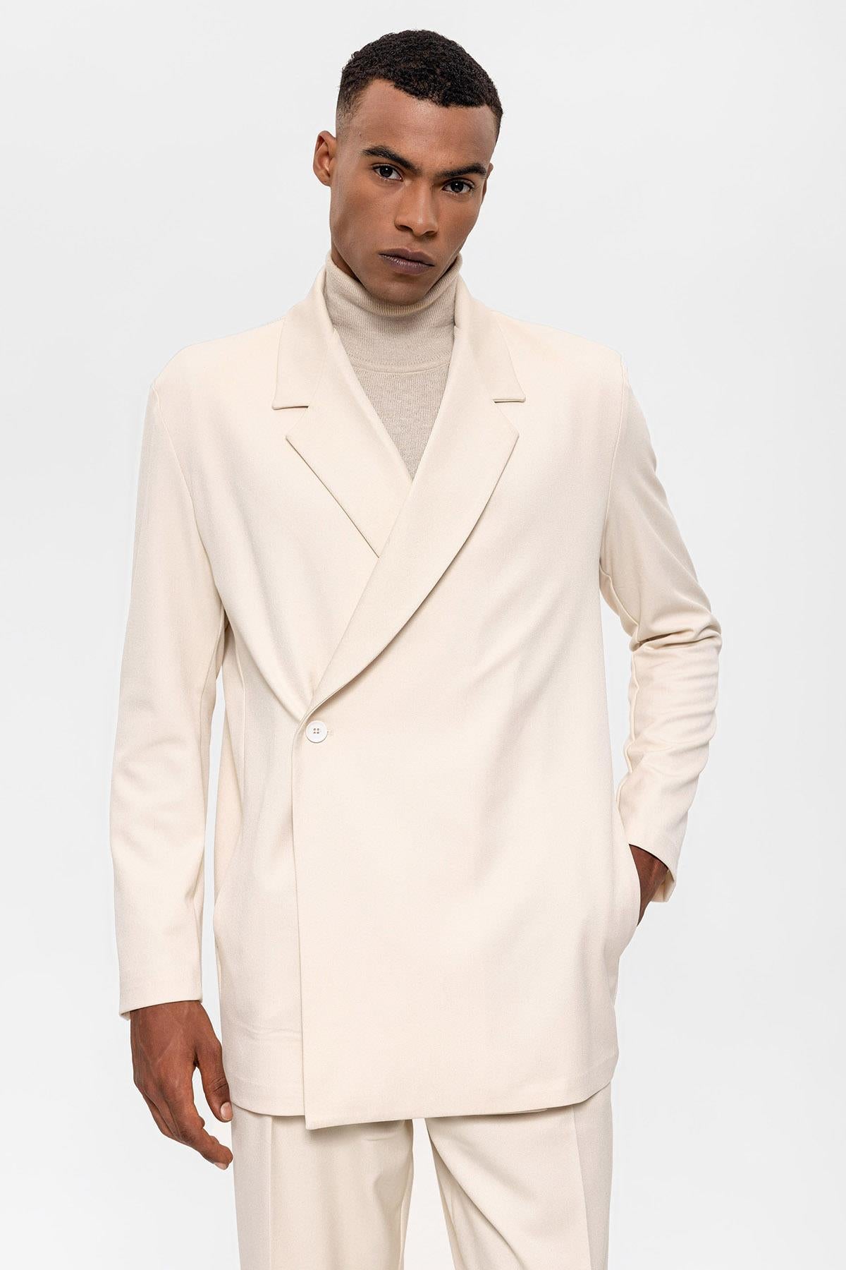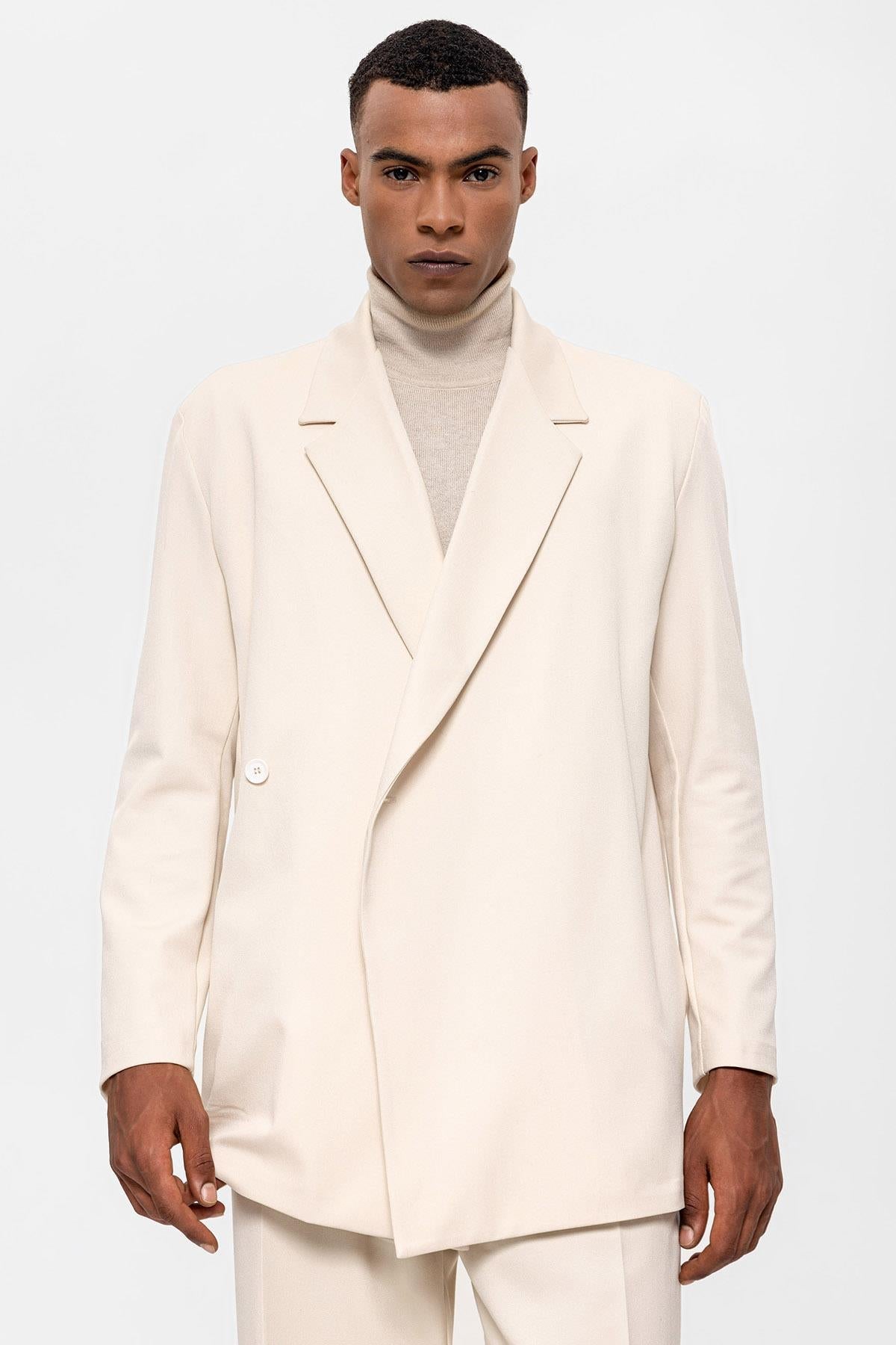 Men's Ecru Double Breasted Closure Hidden...