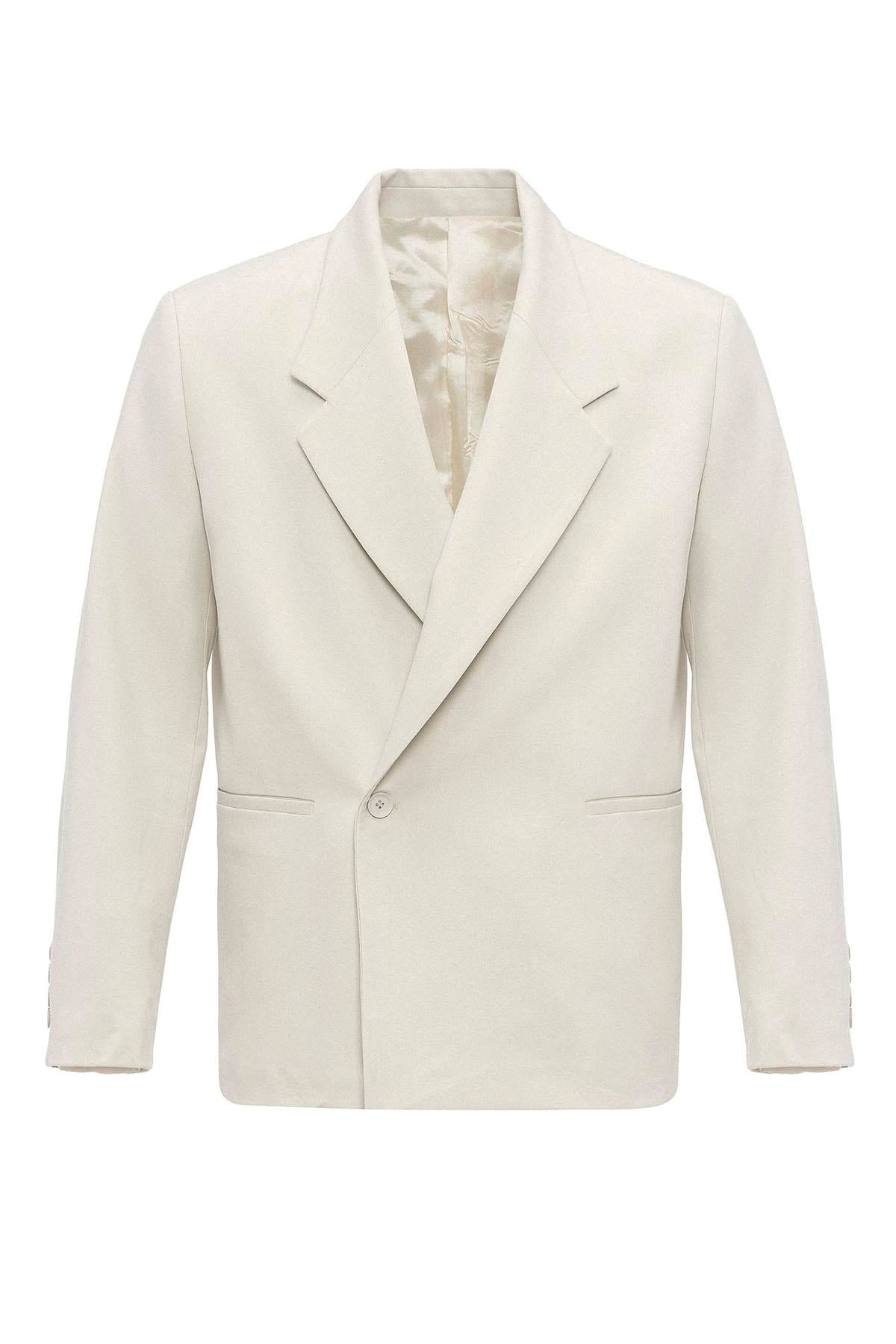 Men's Ecru Double-Breasted Flap Pocket Blazer