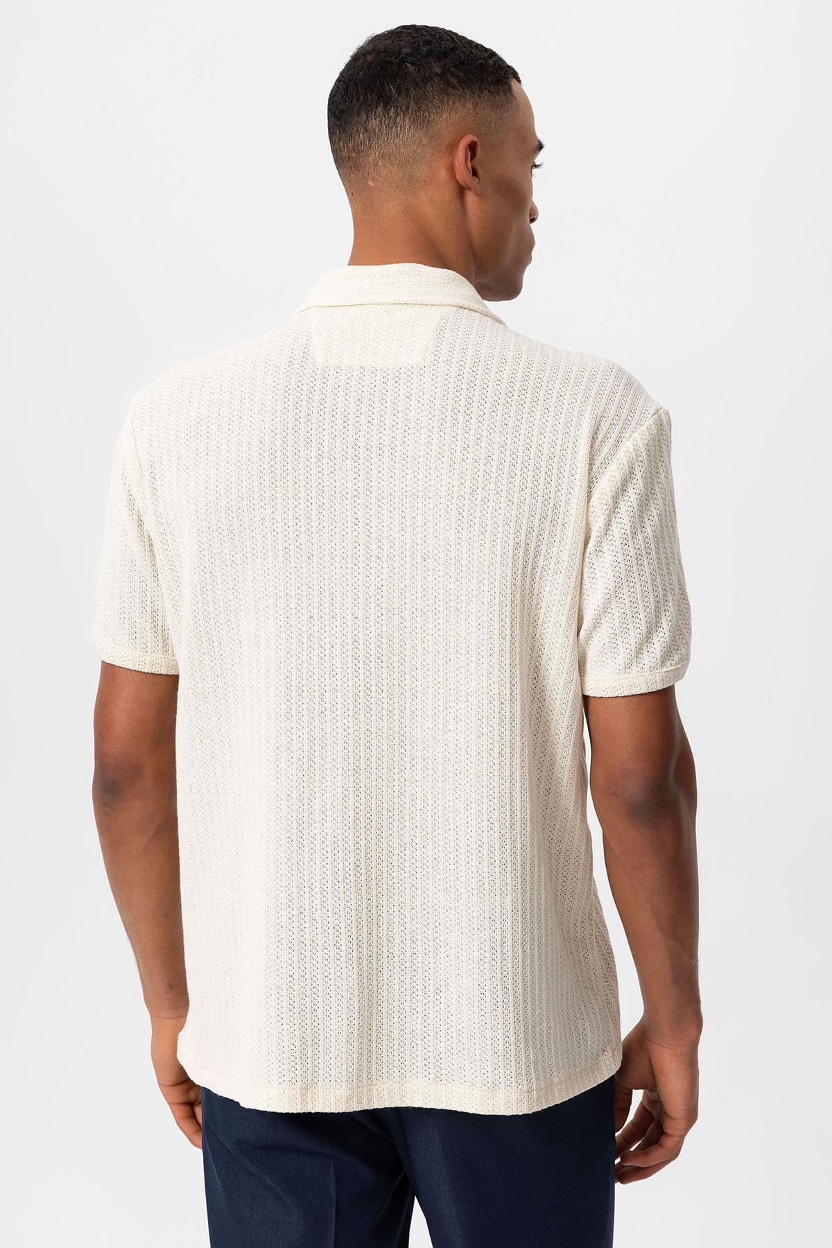 Men's Ecru Polo Collar Knit Short-Sleeve...