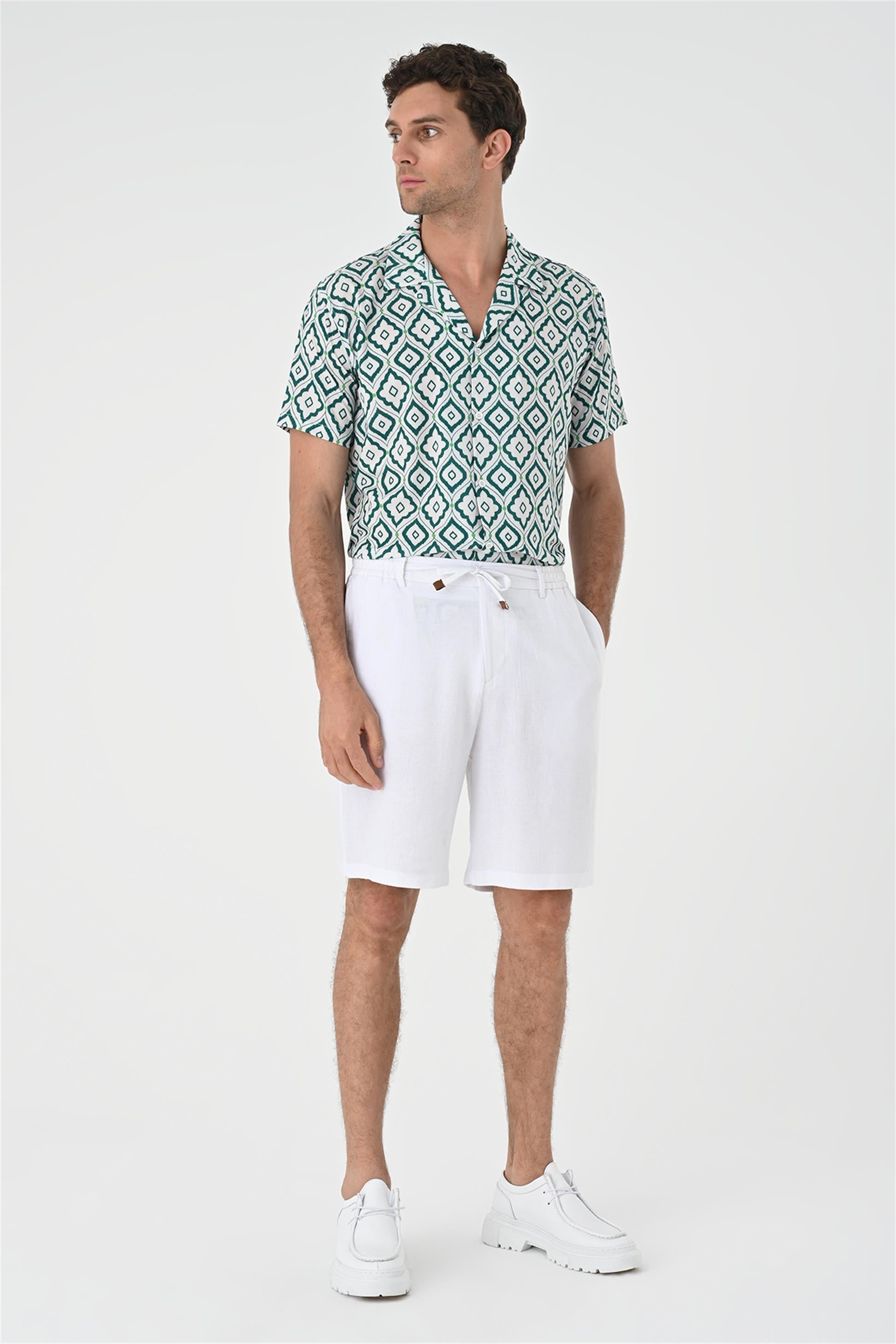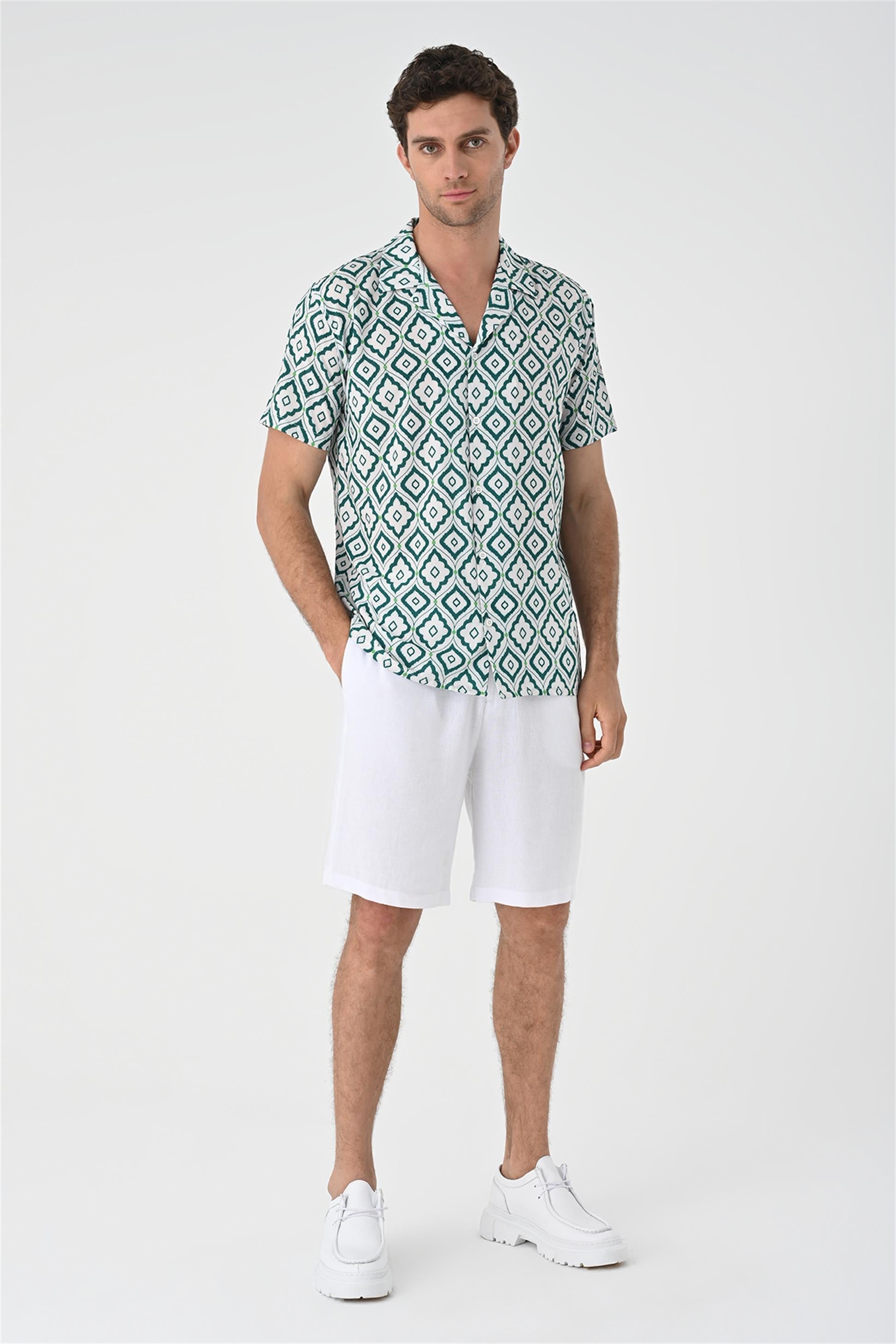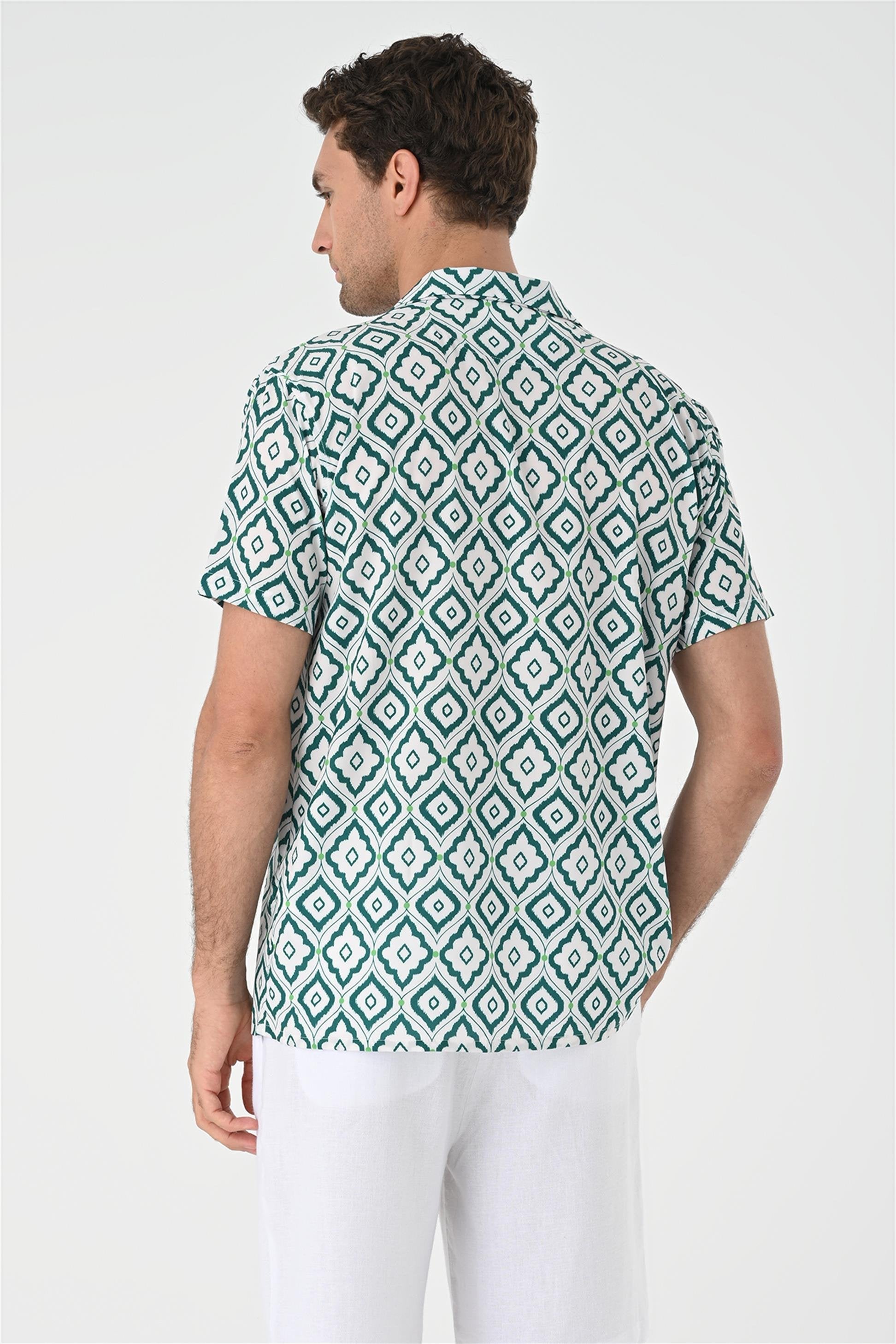 Men's Green Ethnic Pattern Open Collar...