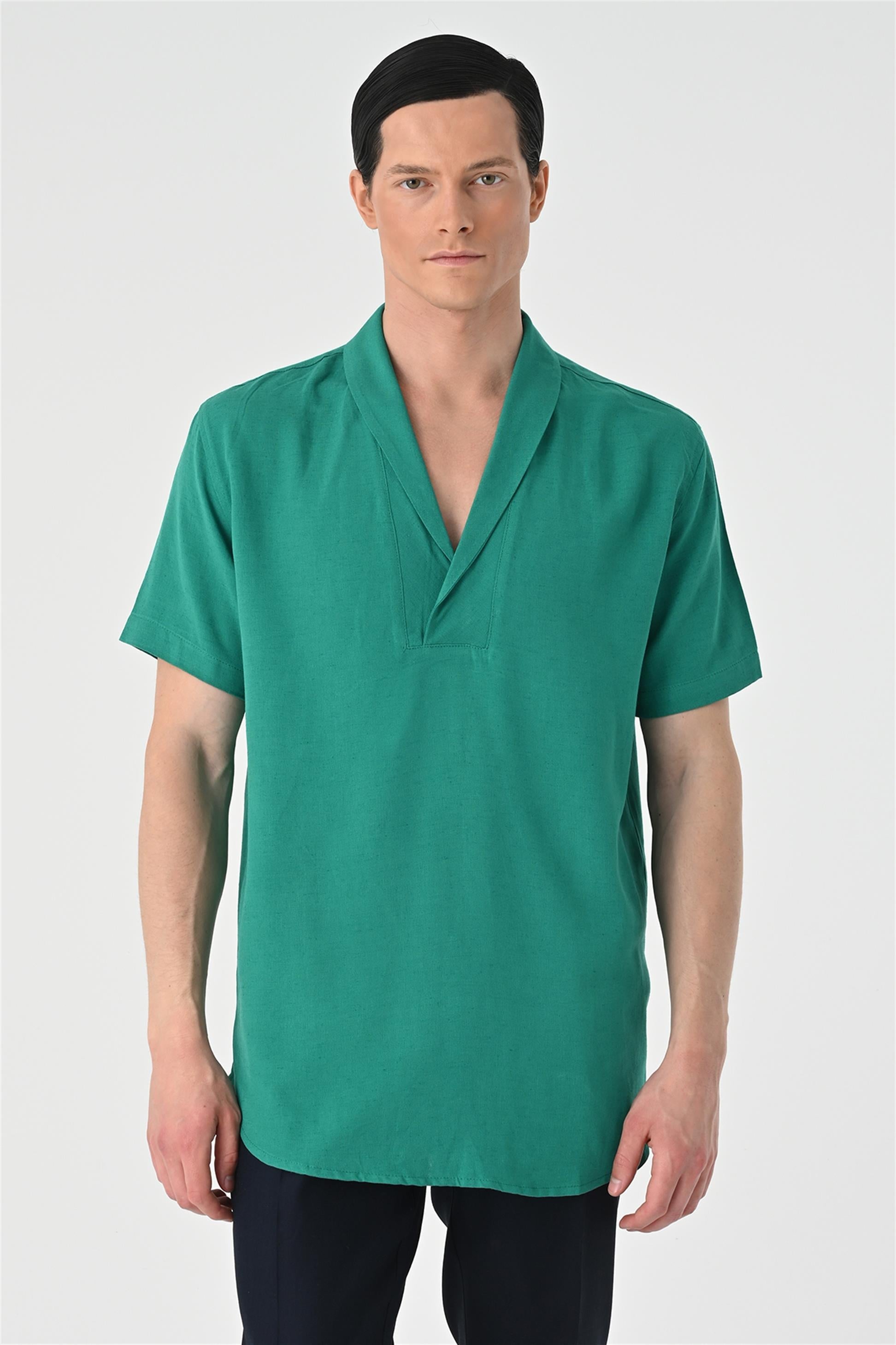 Men's Green Relax Fit Shawl Collar...