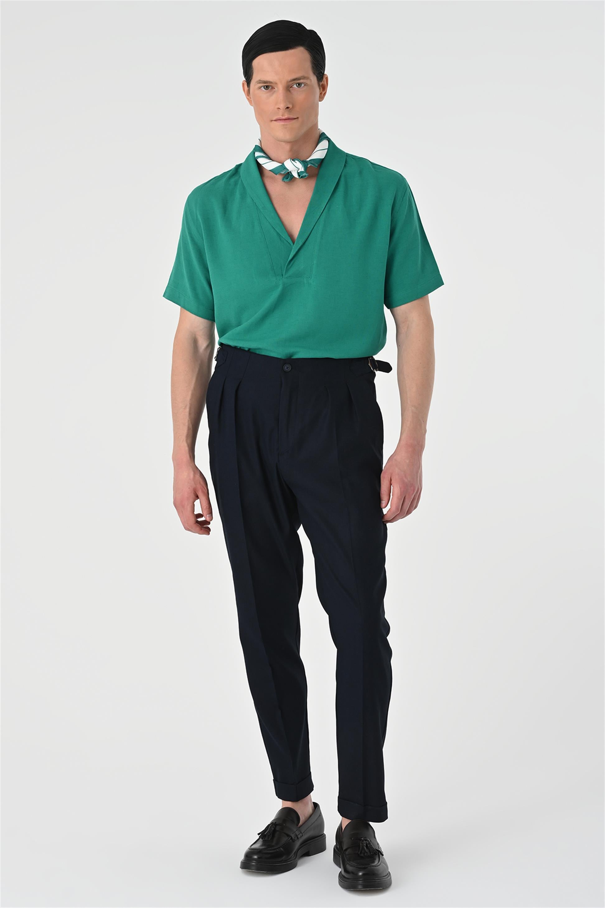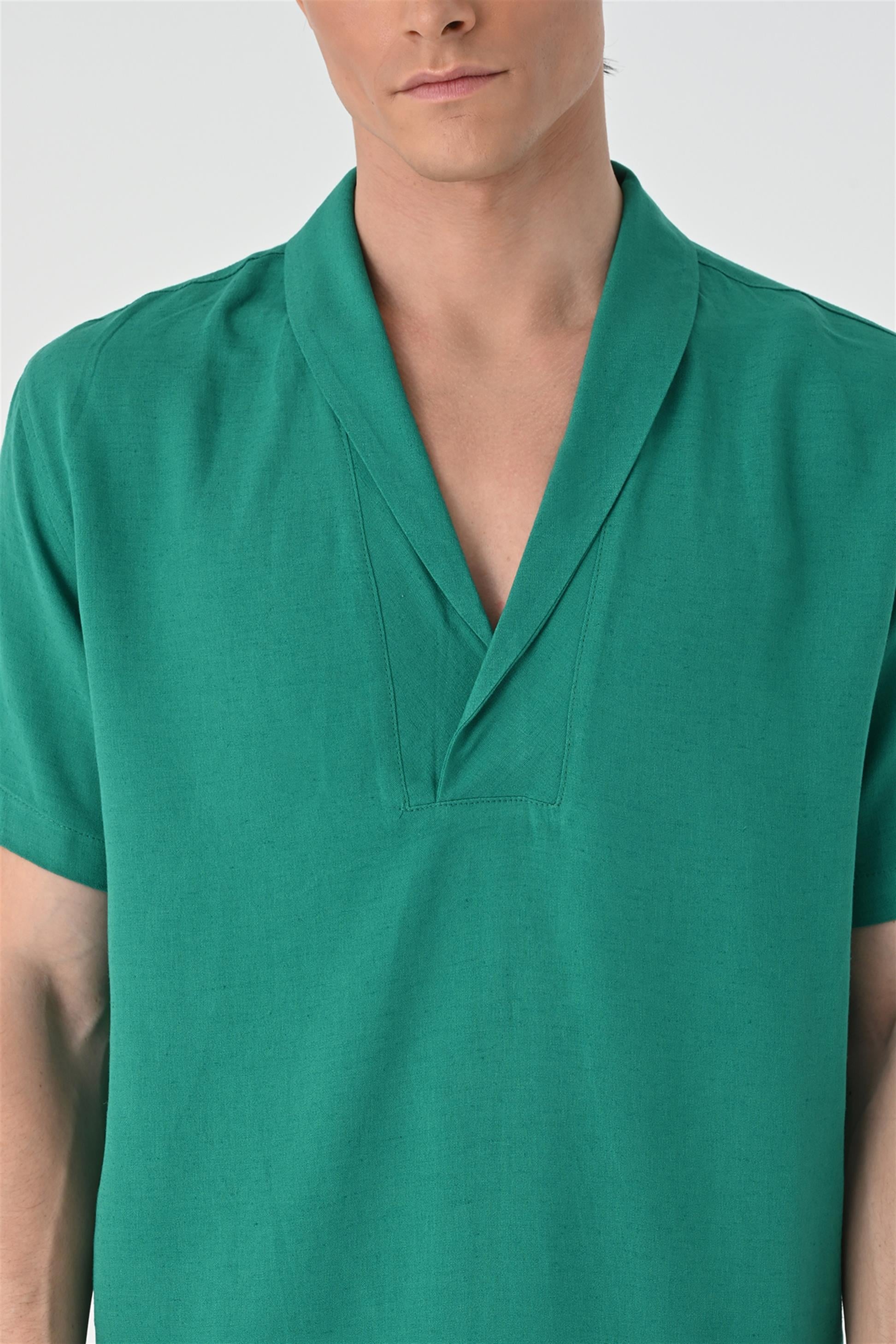 Men's Green Relax Fit Shawl Collar...
