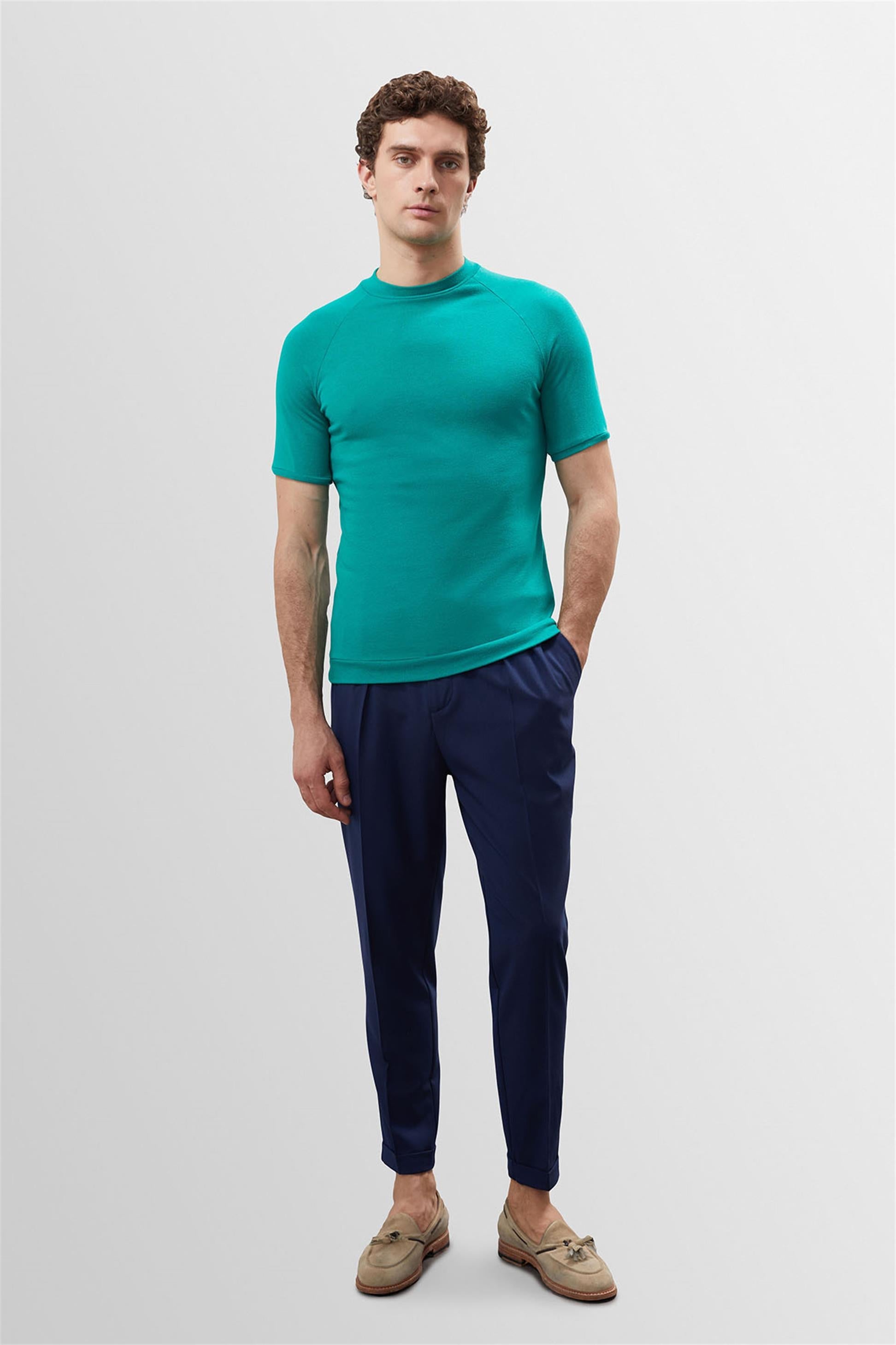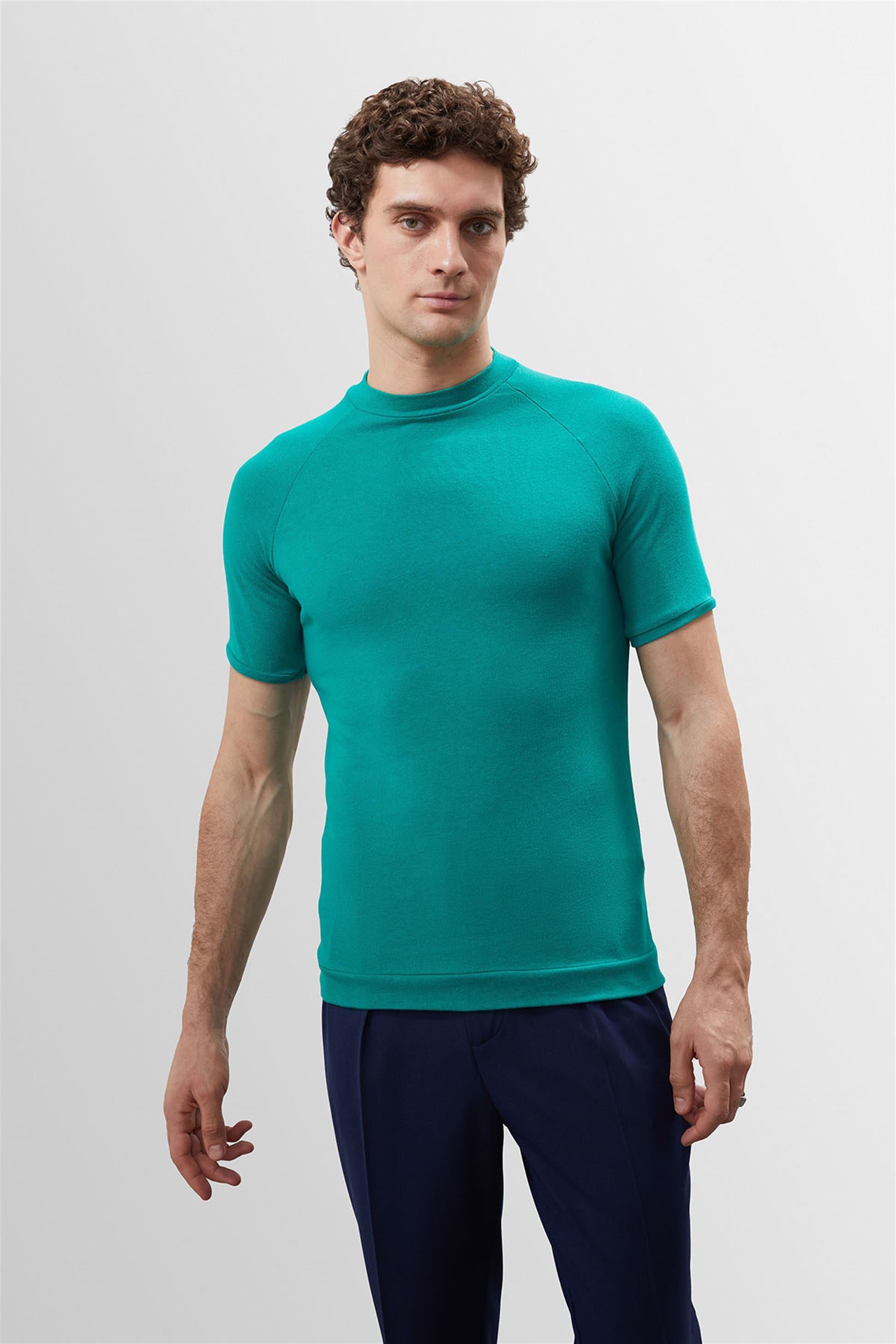 Men's Green Slim Fit Crew Neck...