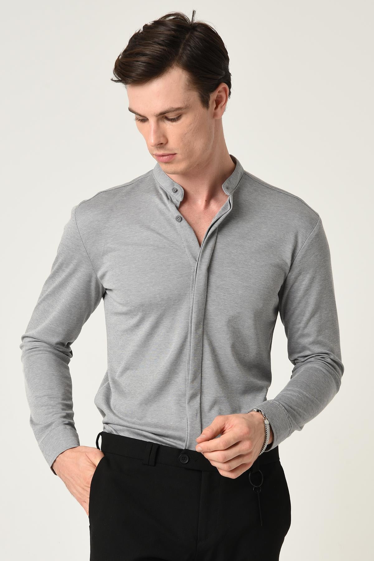 Men's Grey Classic Collar Hidden Button...