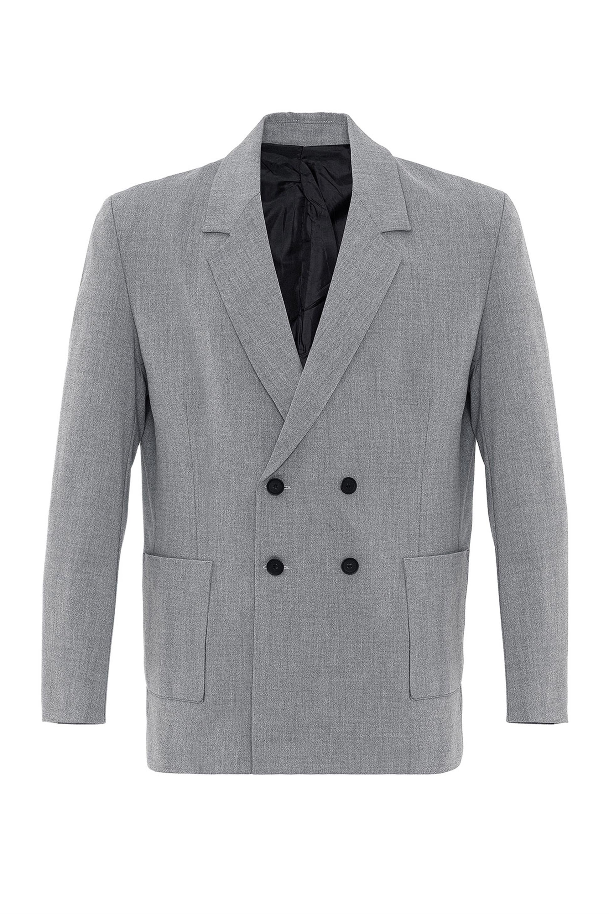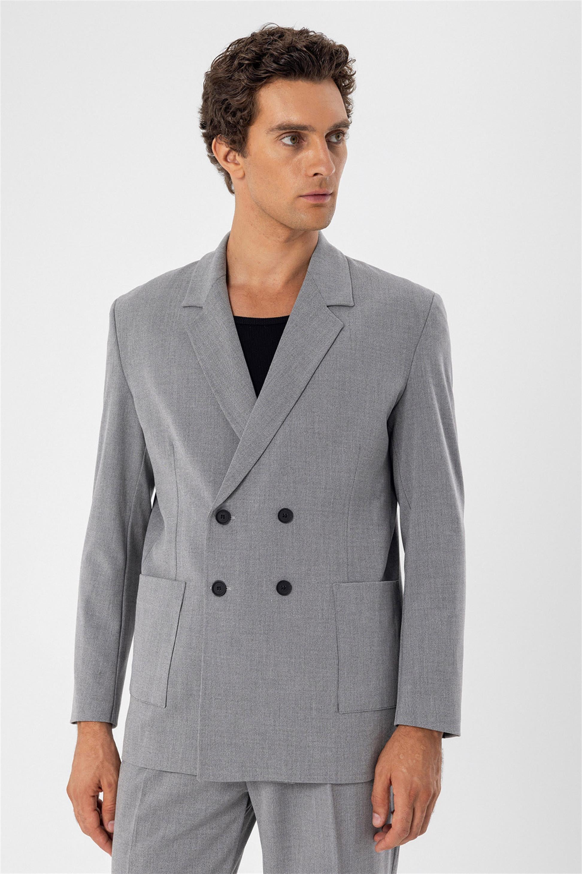 Men's Grey Double Breasted Blazer Jacket...