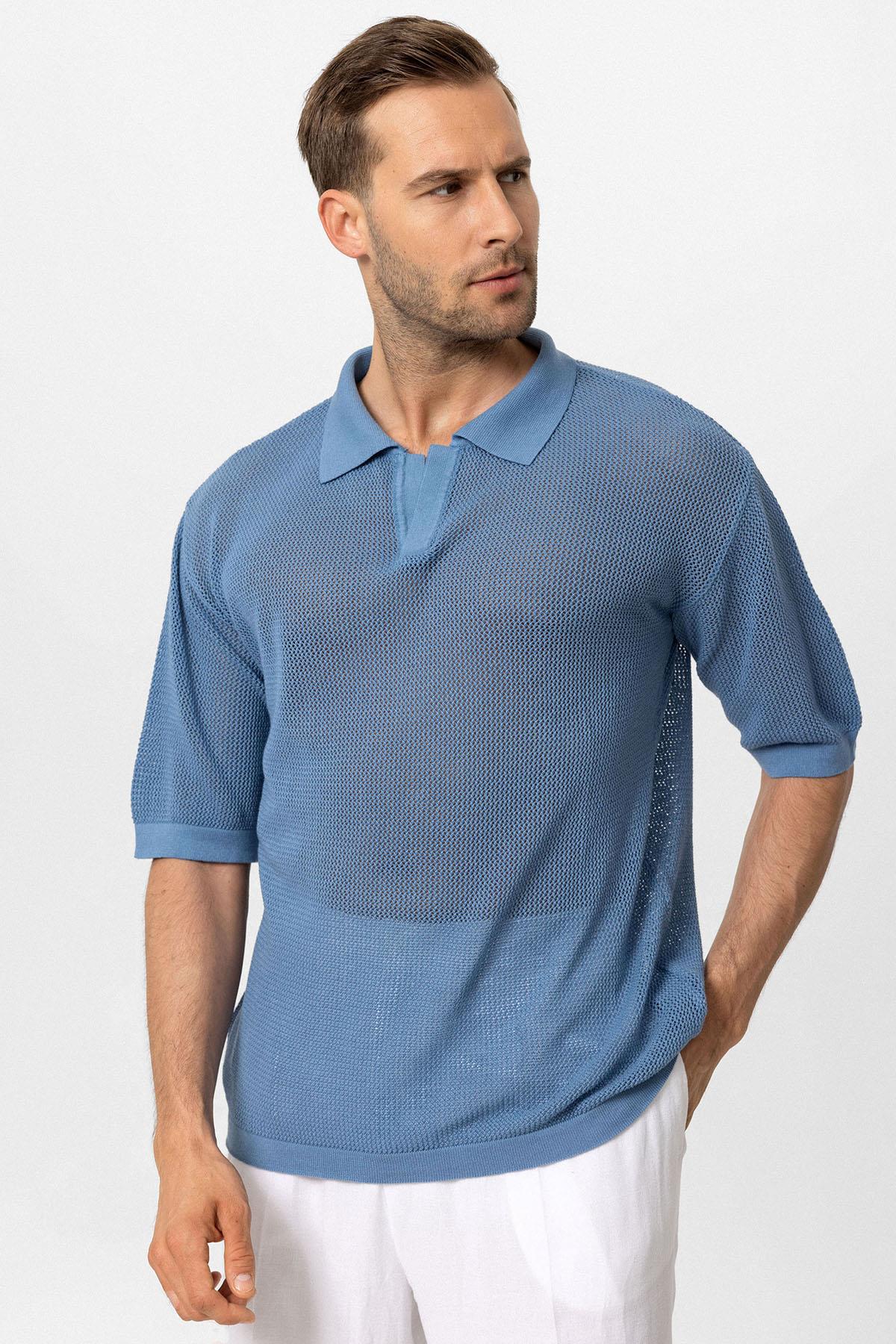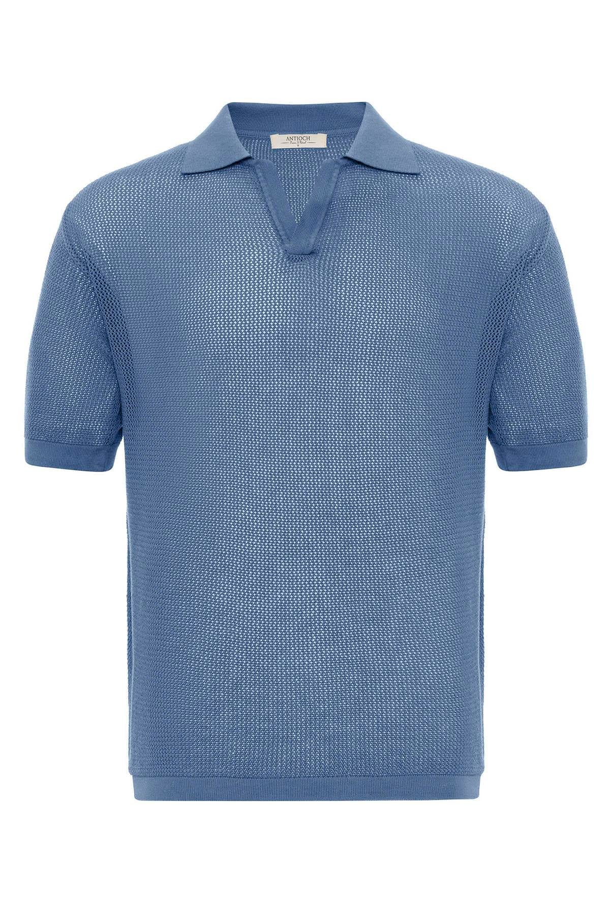 Men's Indigo Polo Neck Knit T-Shirt