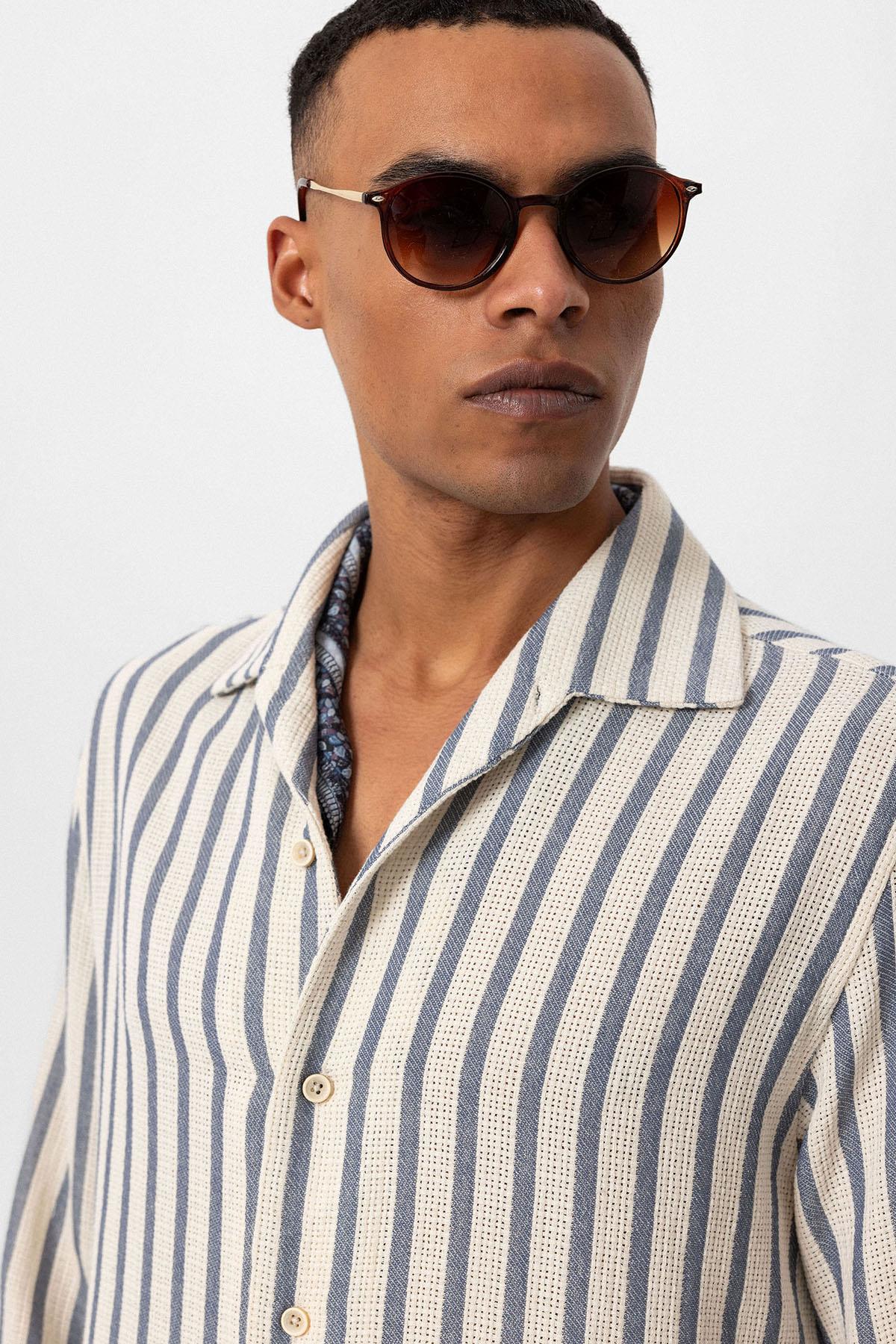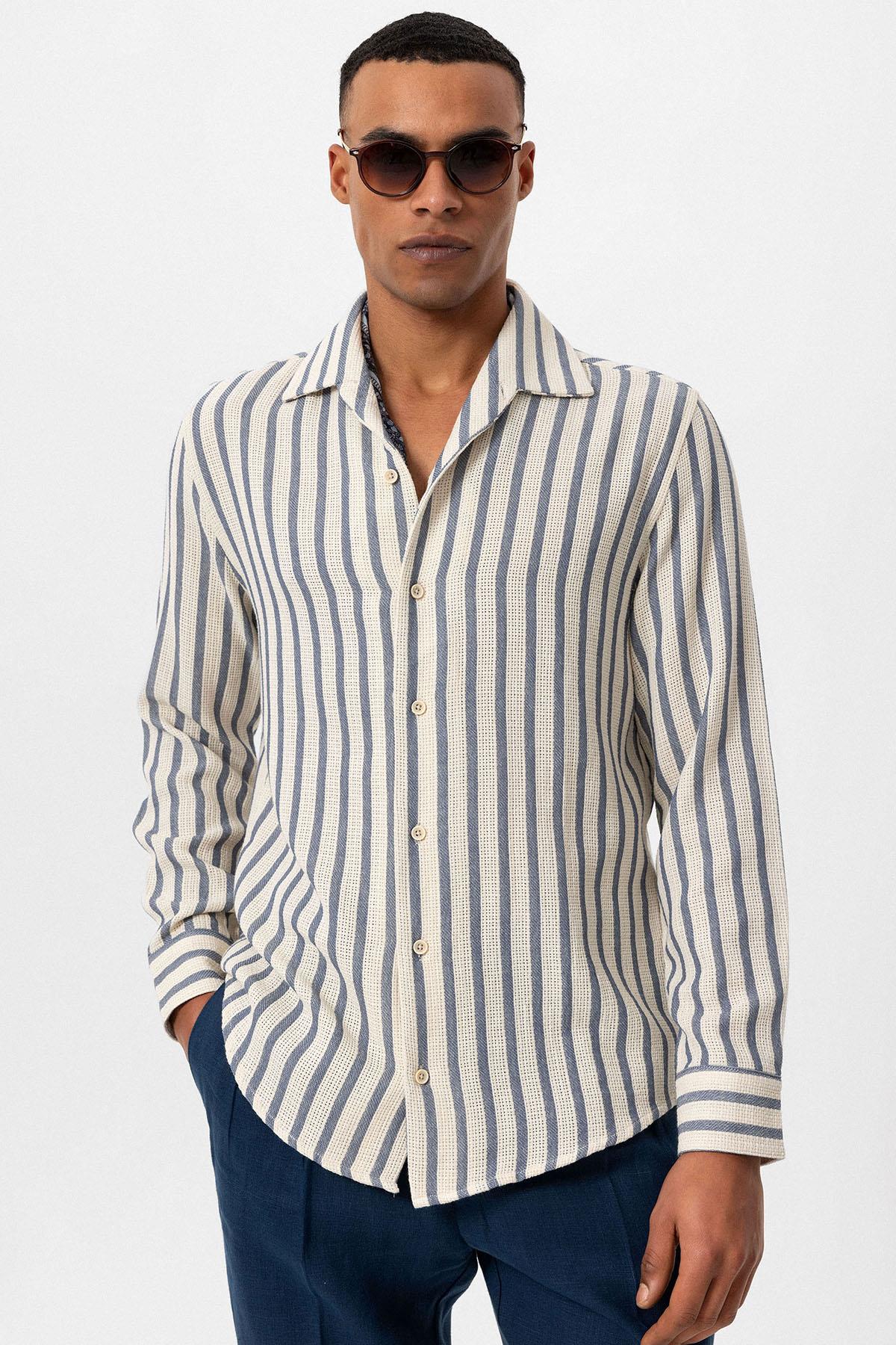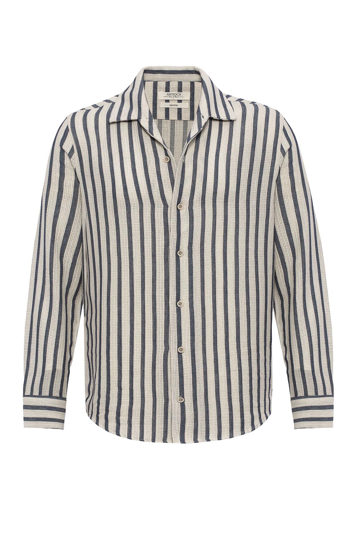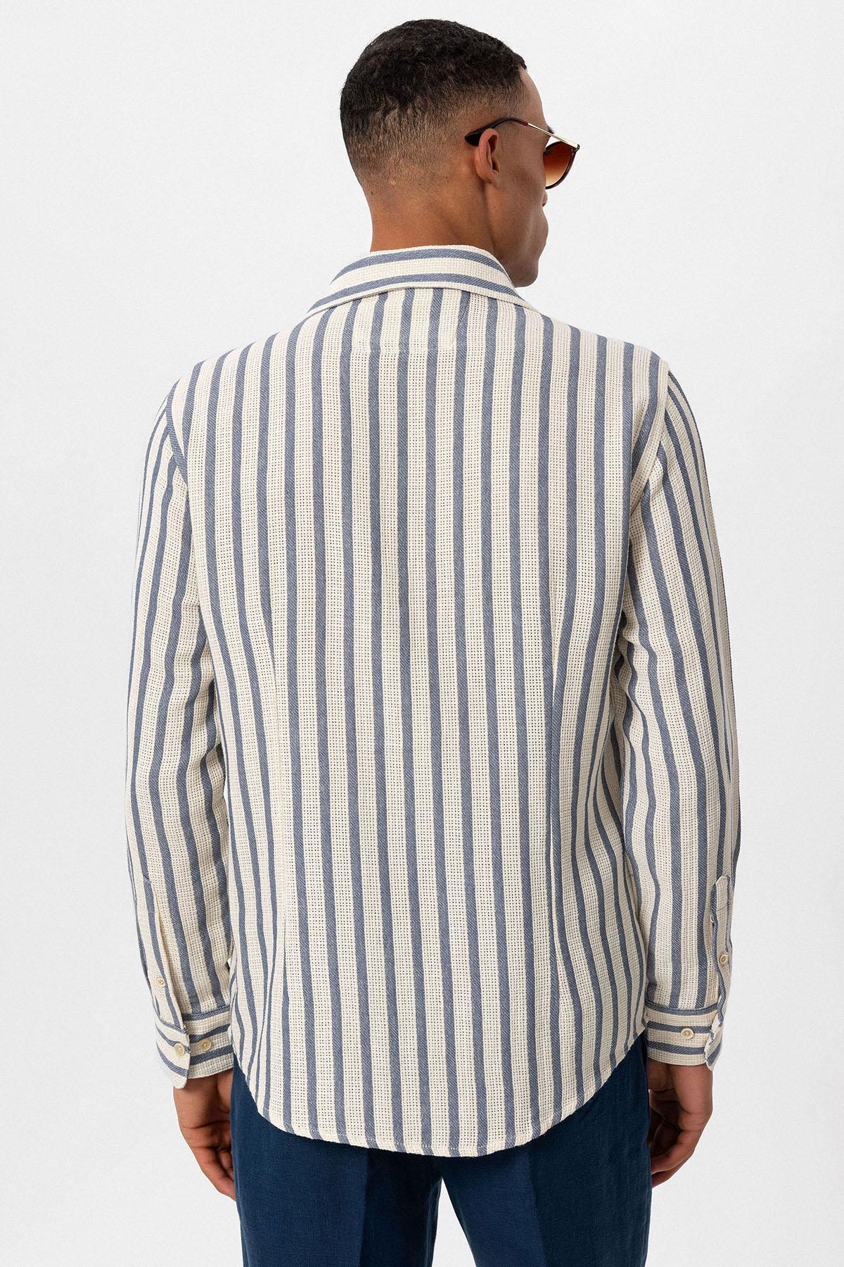 Men's Indigo Striped Knit Long-Sleeve Shirt...
