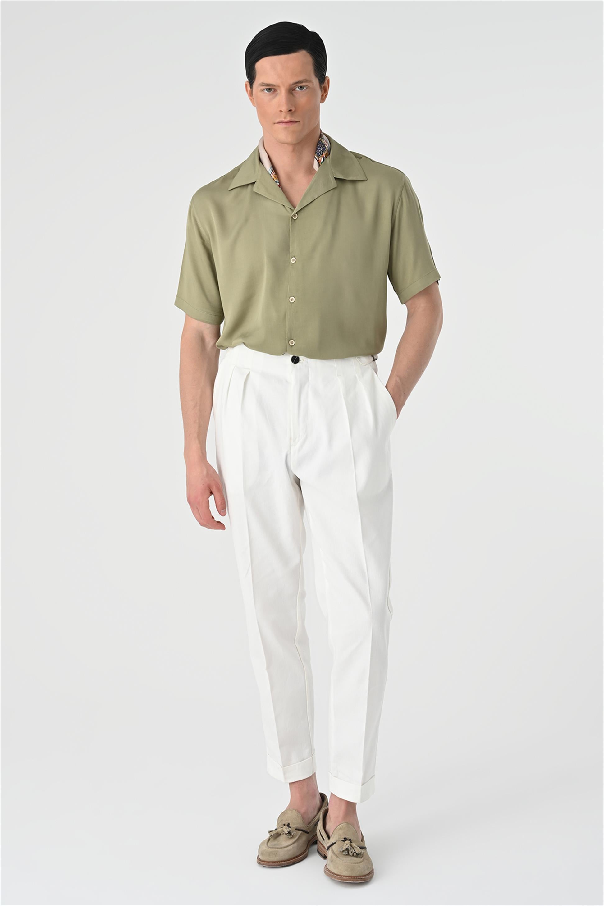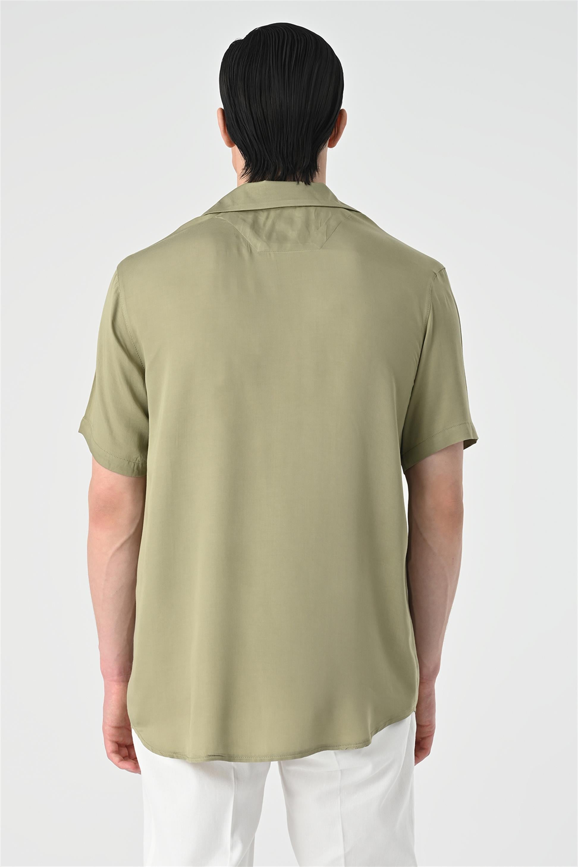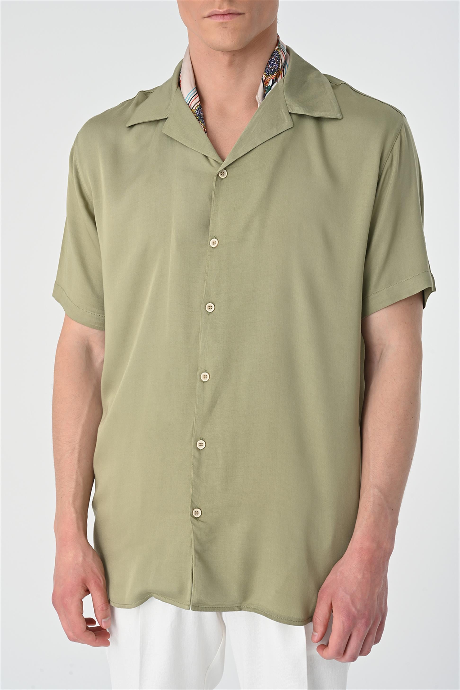Men's Khaki Open Collar Oversized Short...