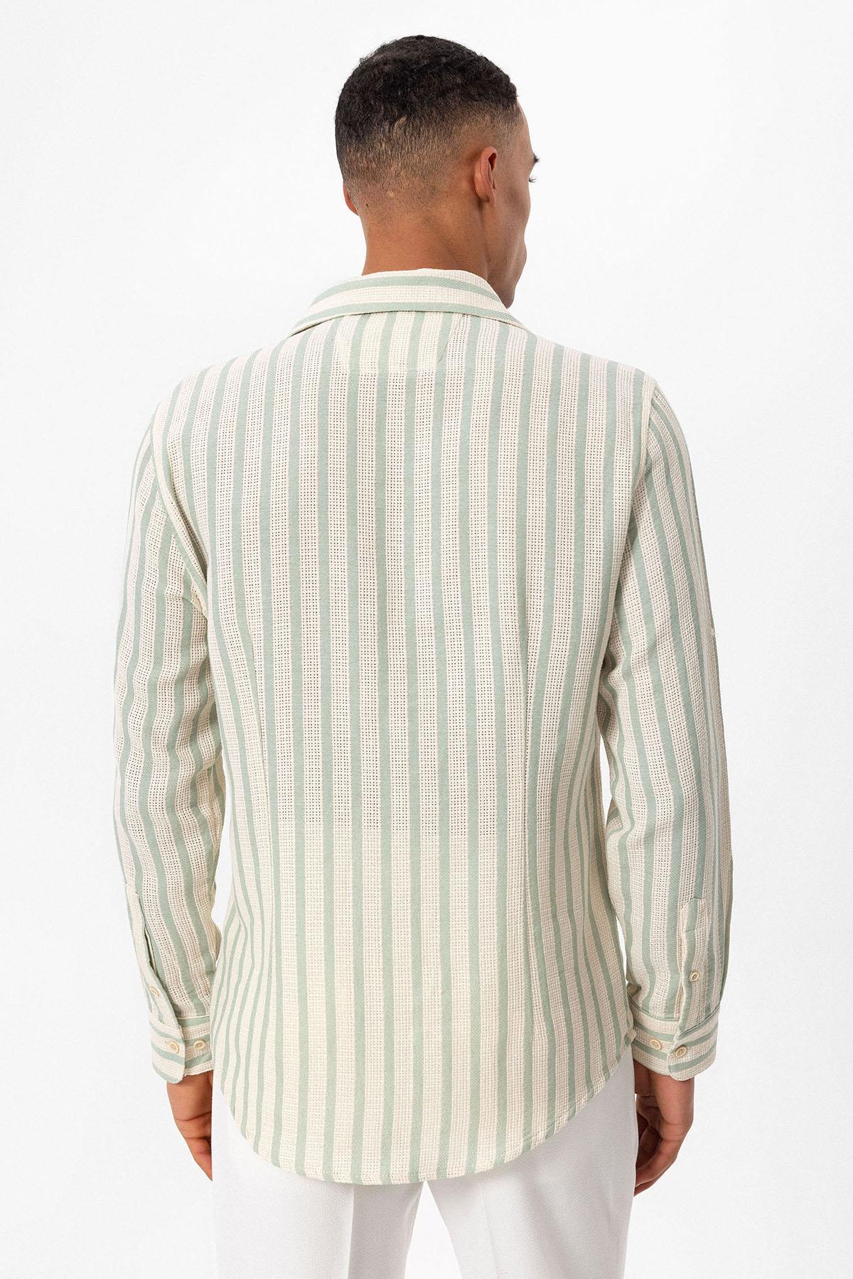 Men's Mint Striped Knit Long-Sleeve Shirt