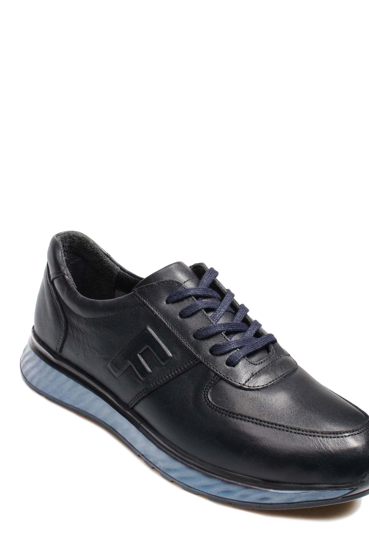 Men's Navy Blue Leather Sneakers with...