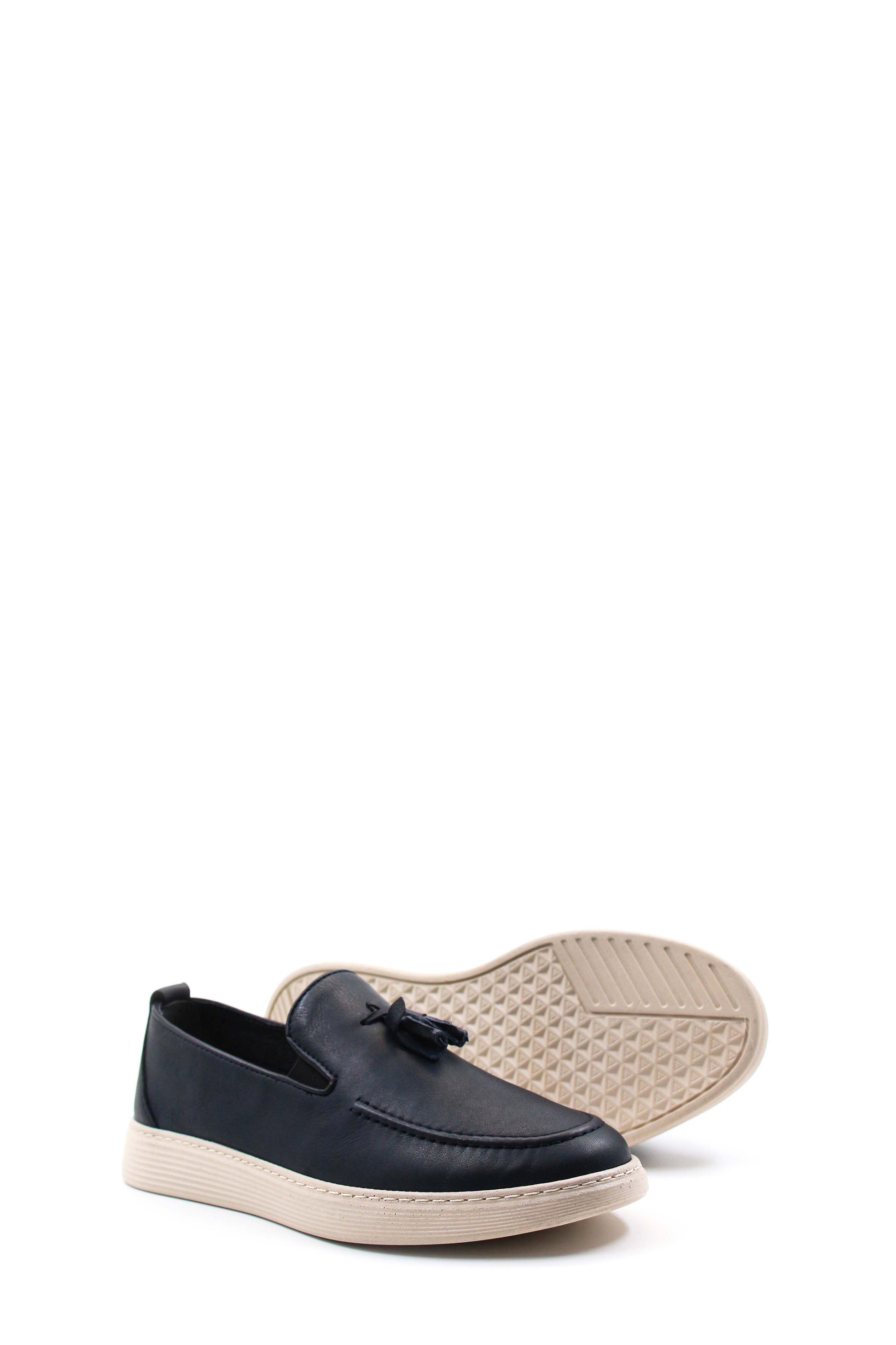 Men's Navy Blue Leather Tassel Loafers-Wessi