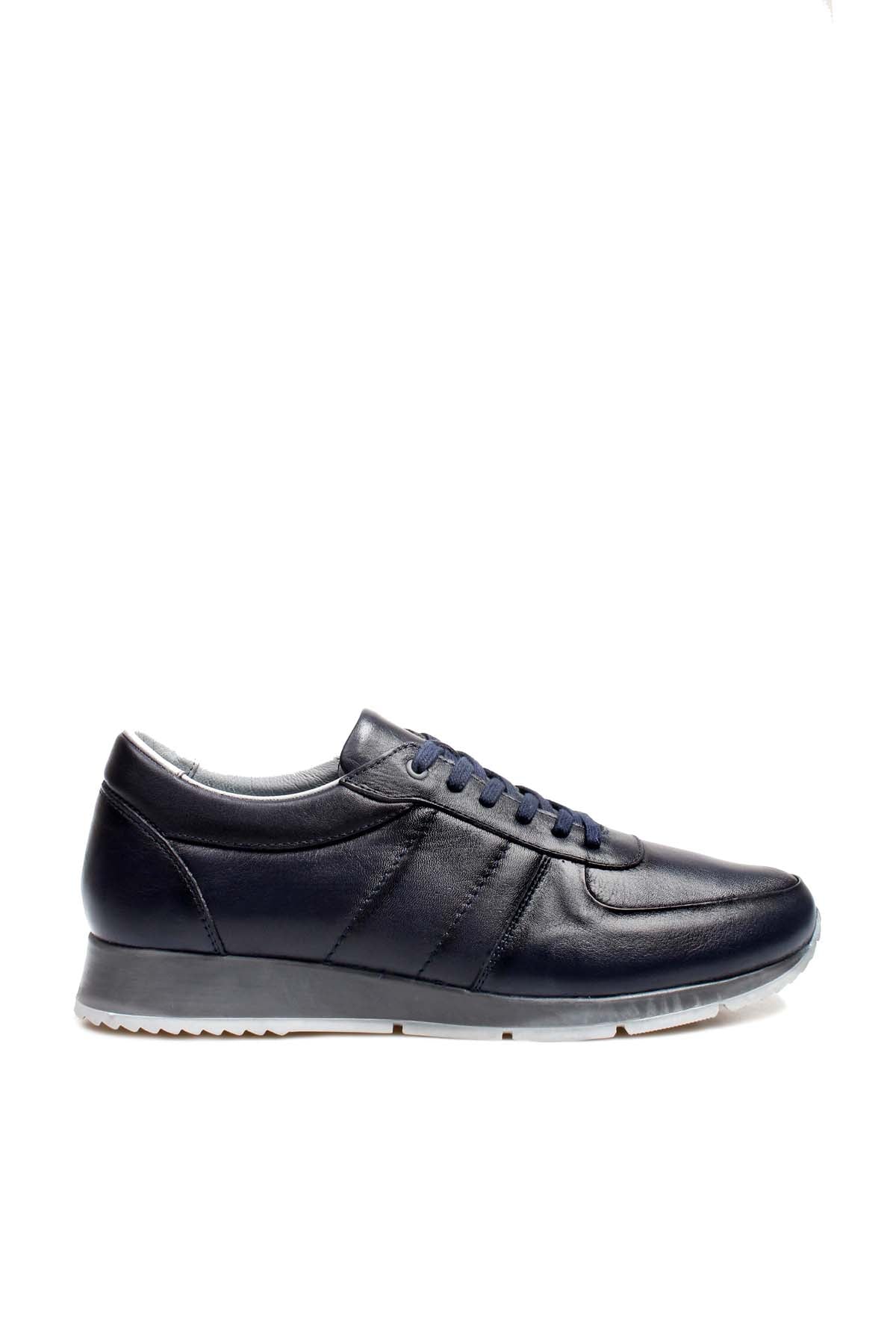 Men's Navy Leather Sneakers with Contrast...
