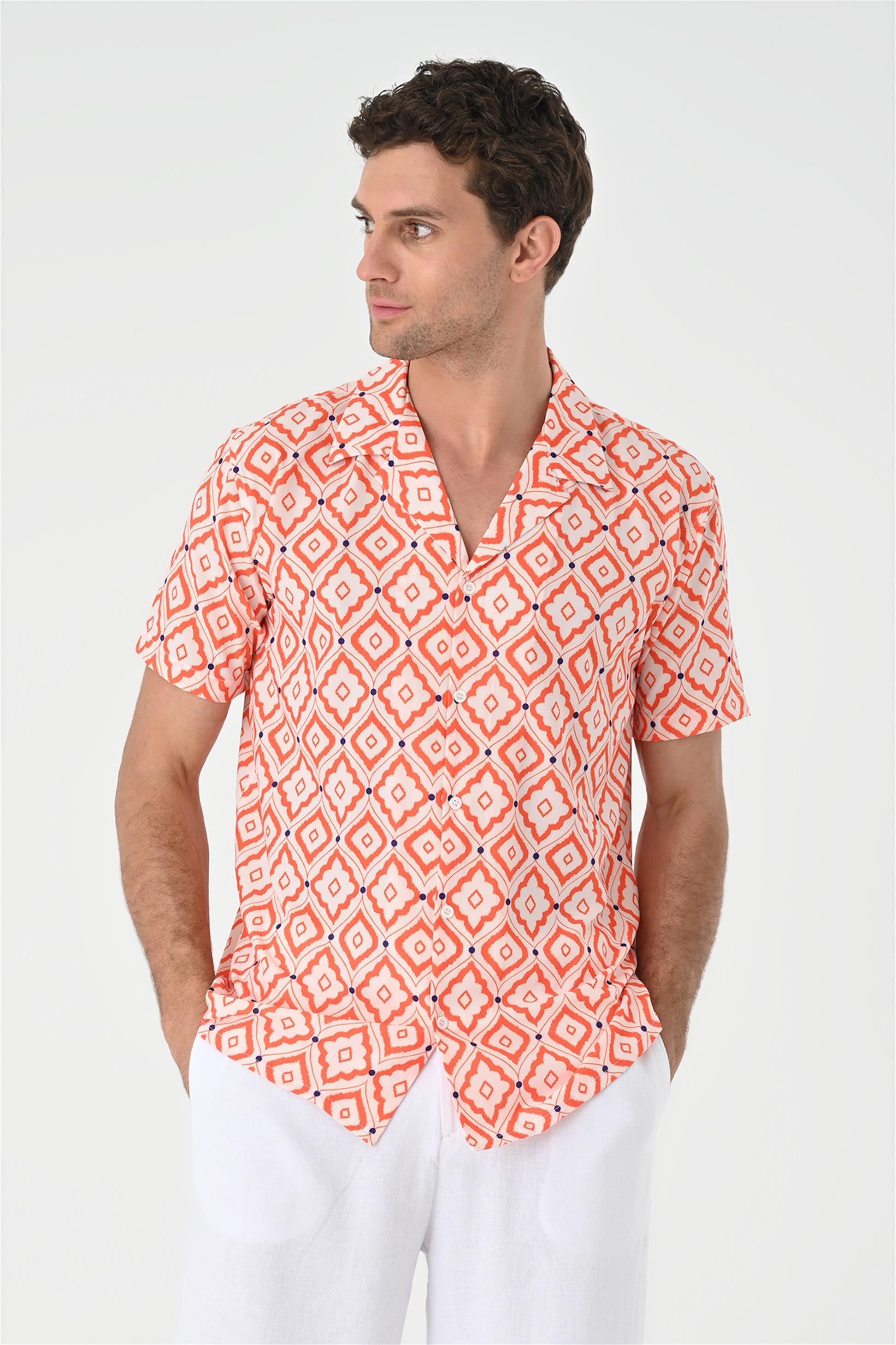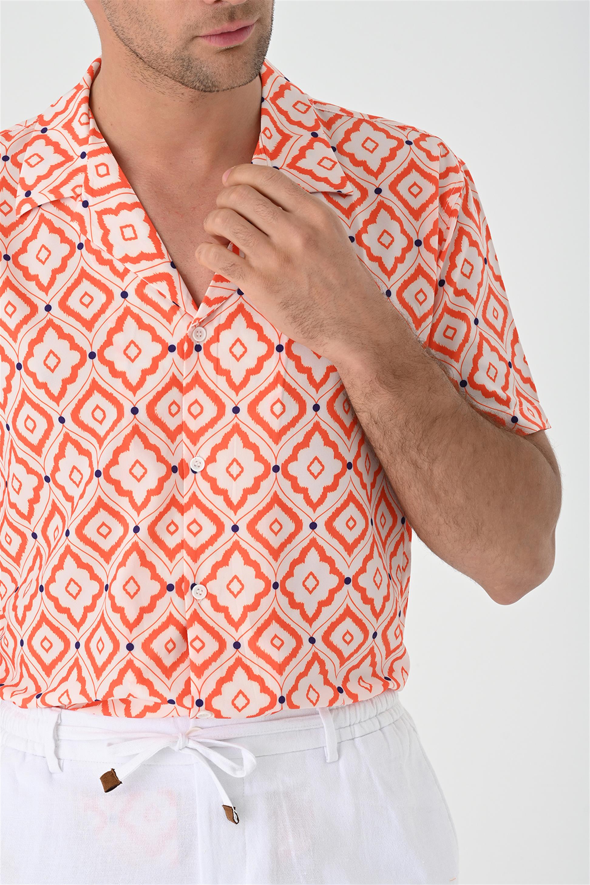 Men's Orange Ethnic Pattern Open Collar...