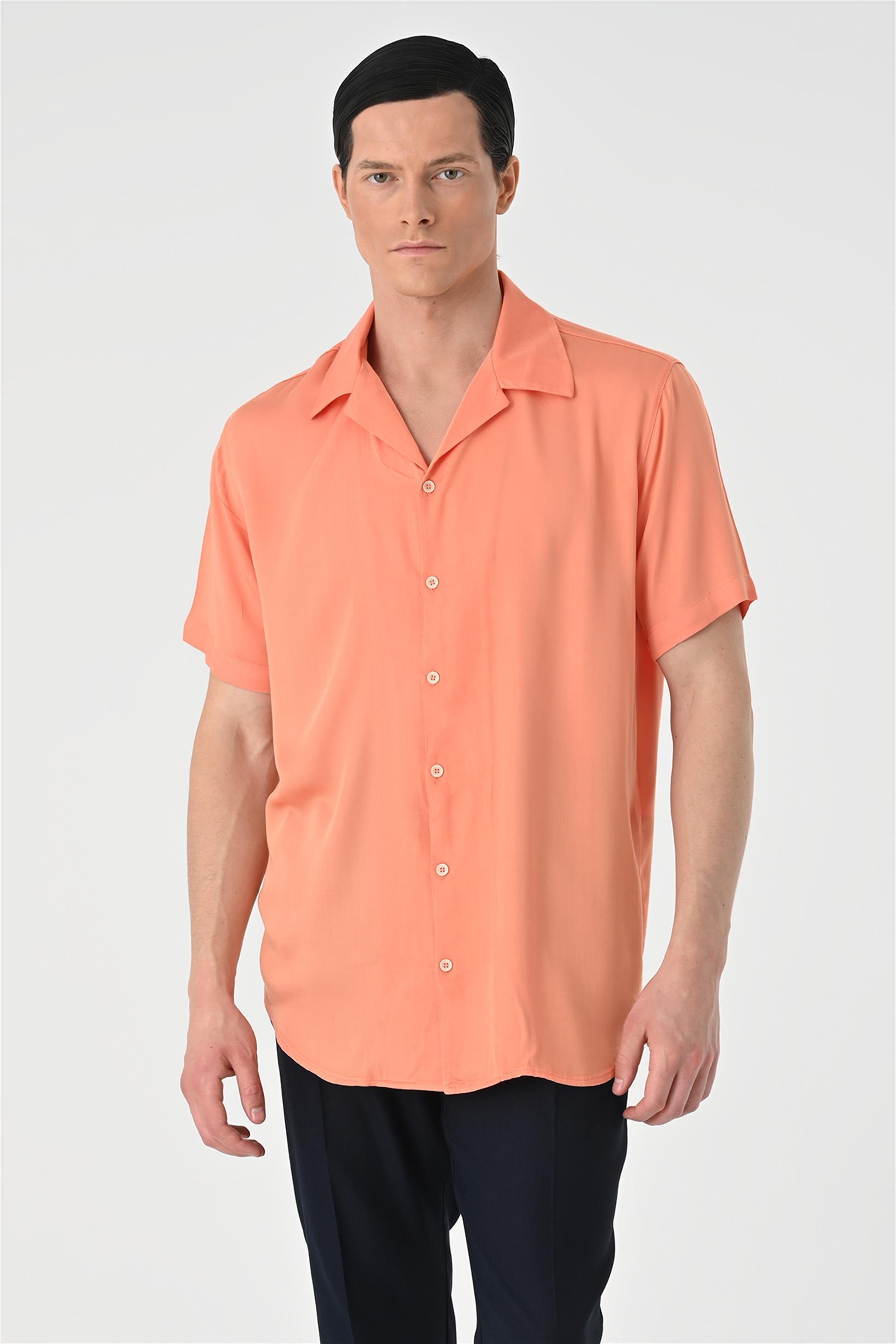 Men's Salmon Open Collar Oversized Short...