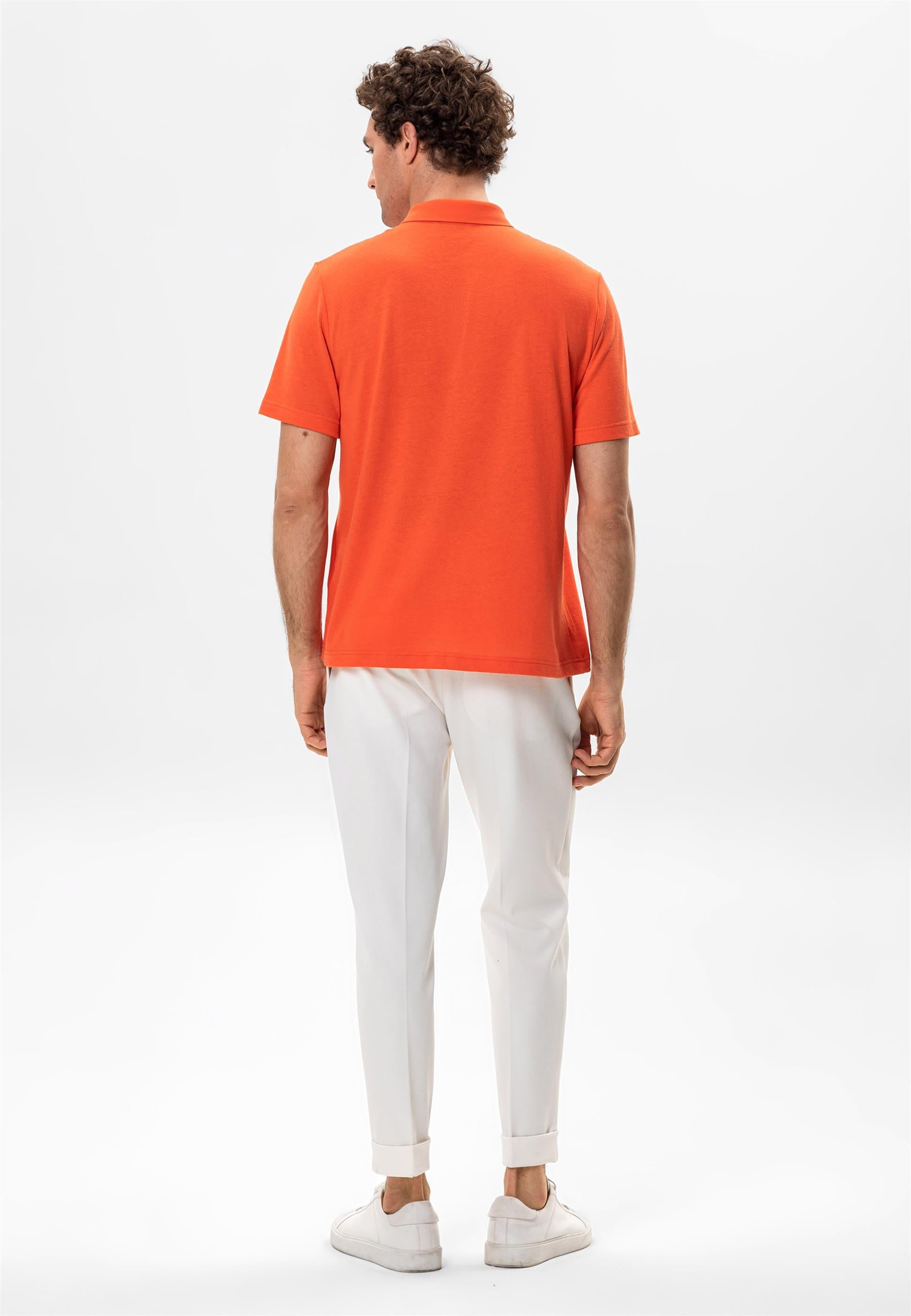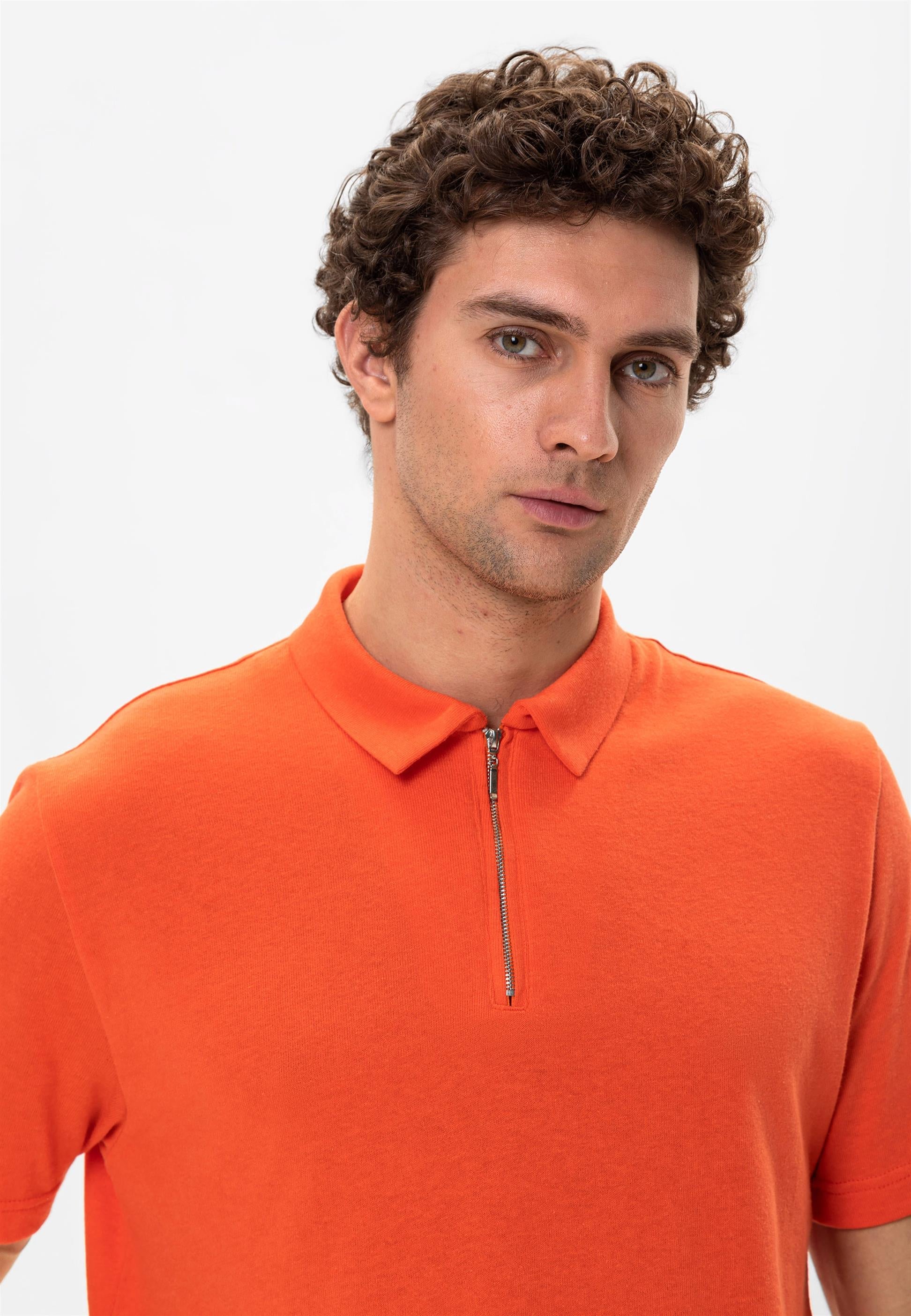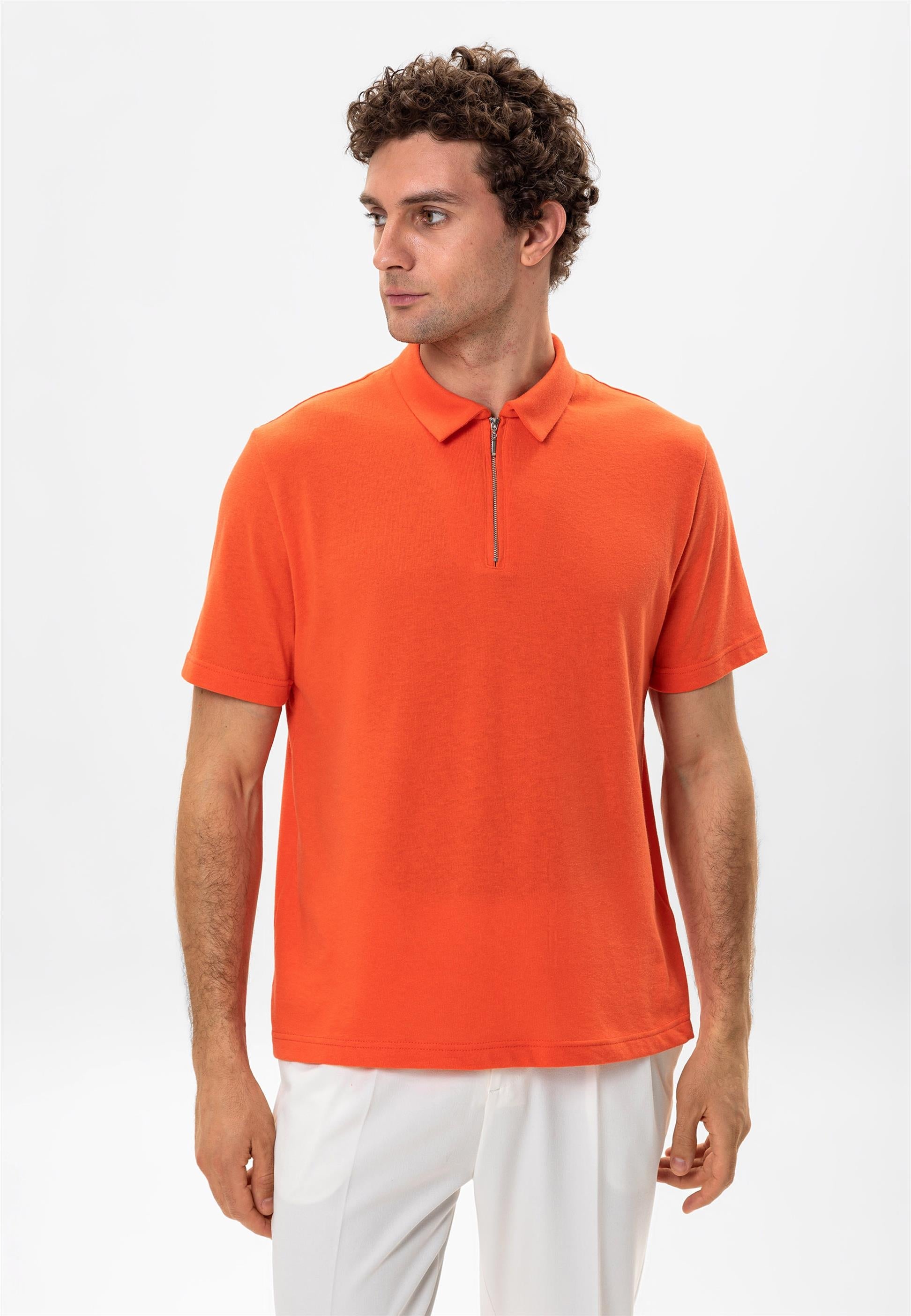 Men's Salmon Polo Neck Zippered T-Shirt