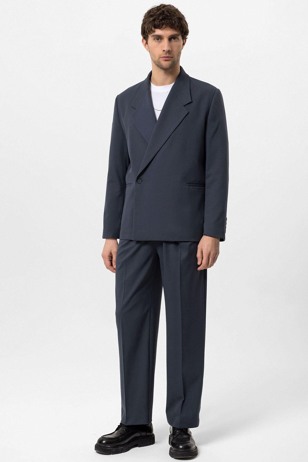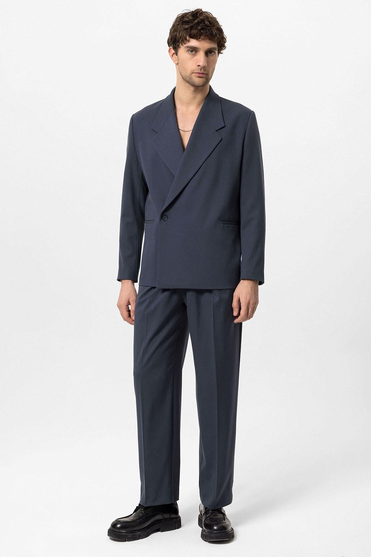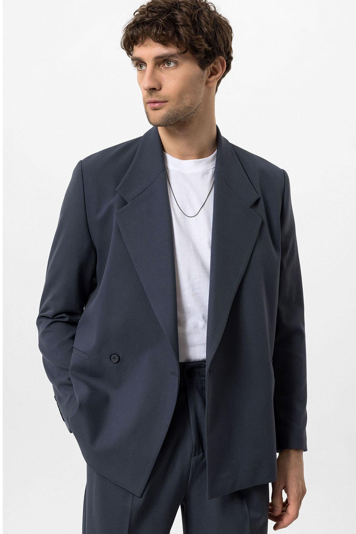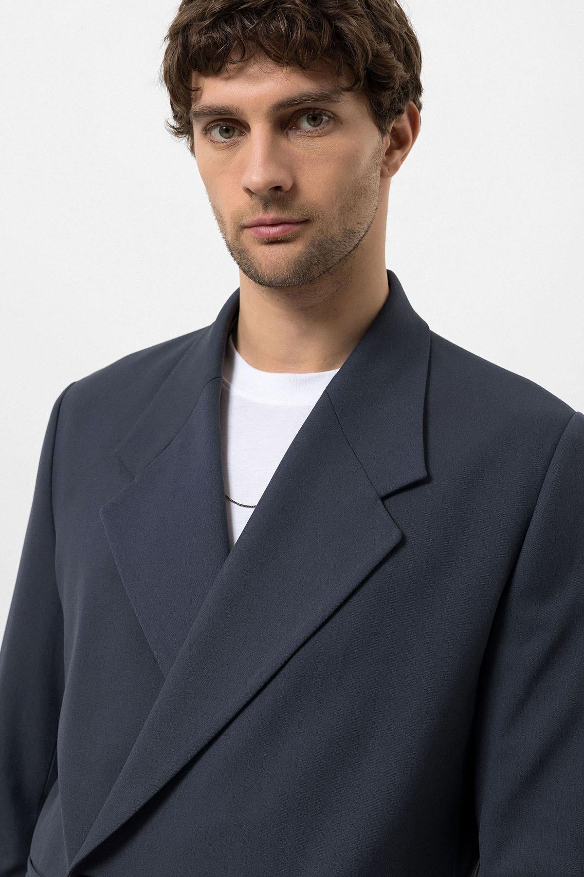 Men's Smoked Double-Breasted Flap Pocket Blazer