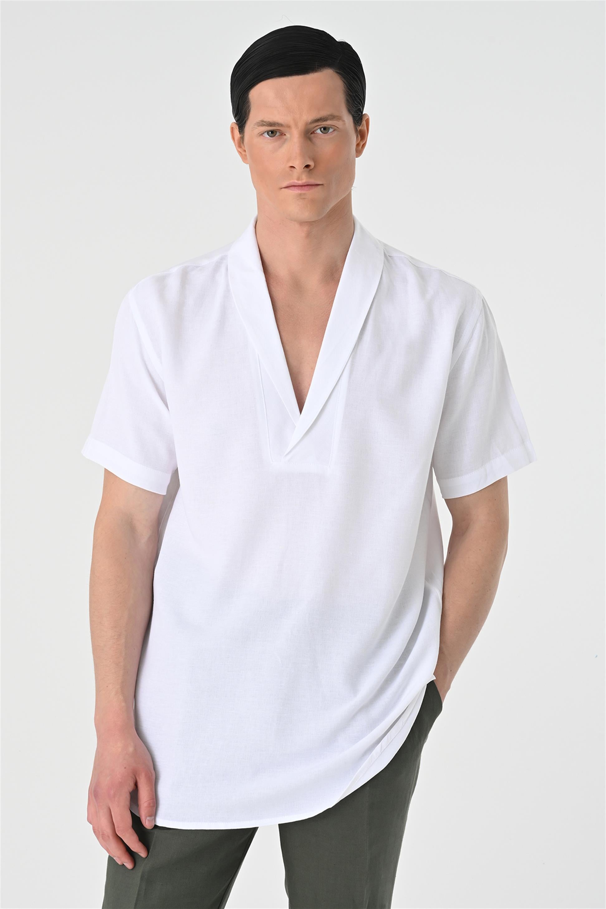 Men's White Relax Fit Shawl Collar...
