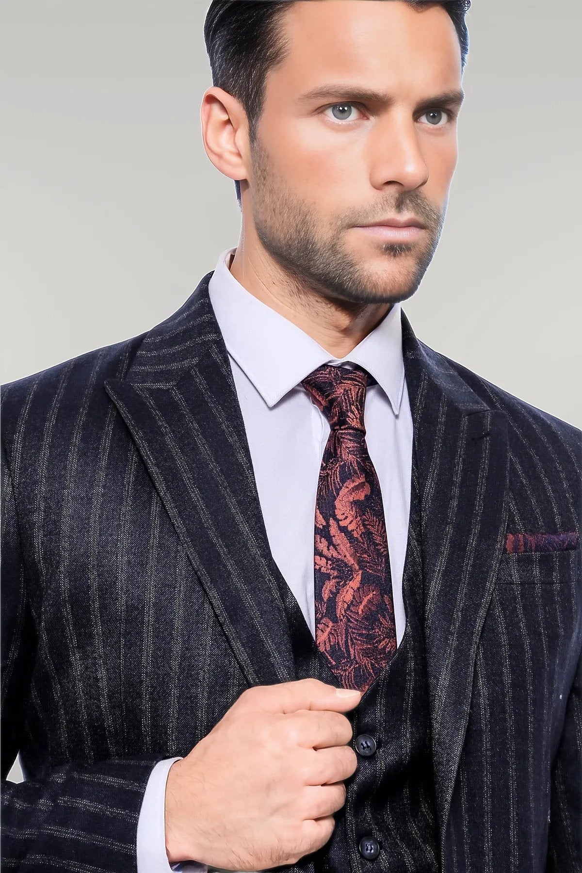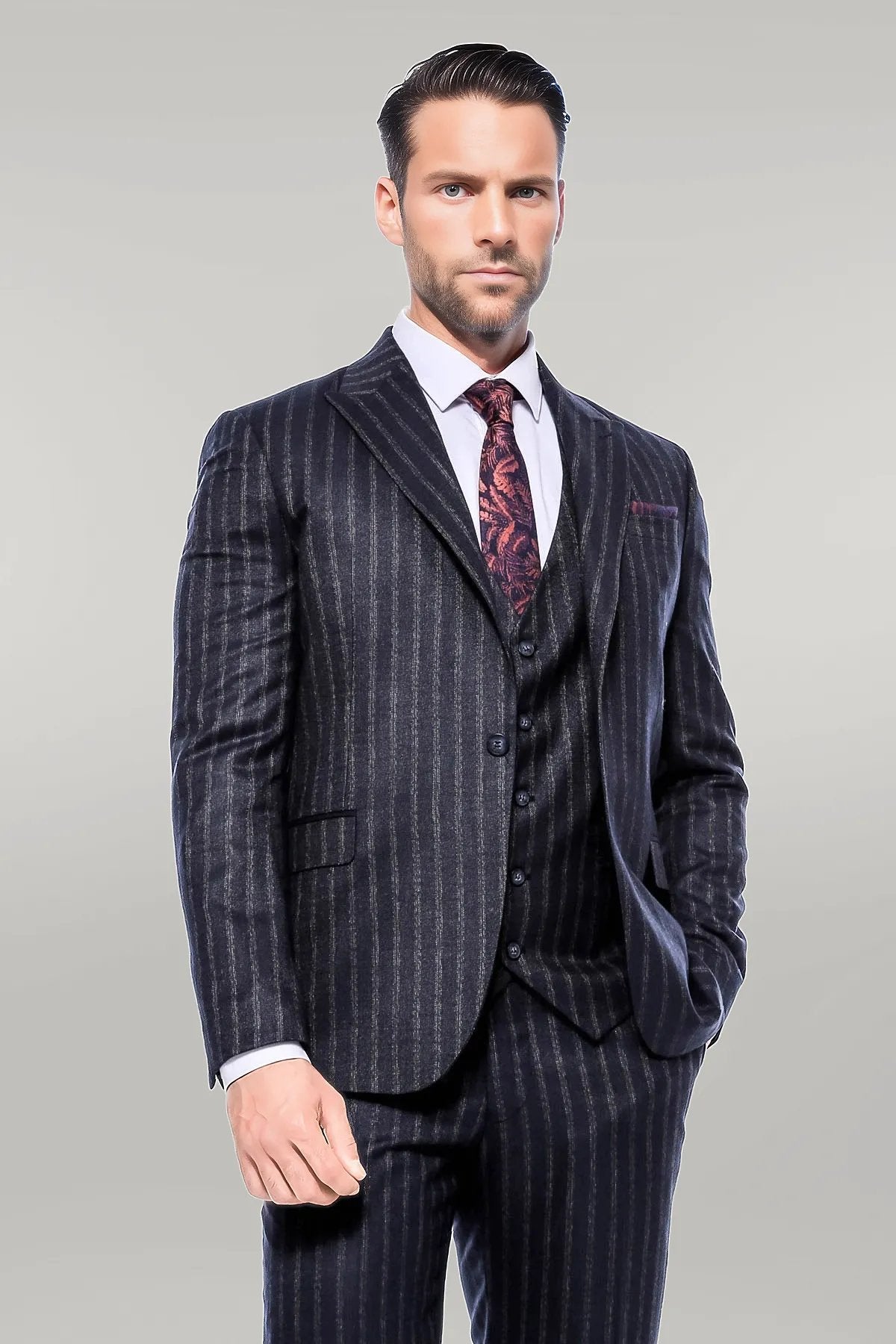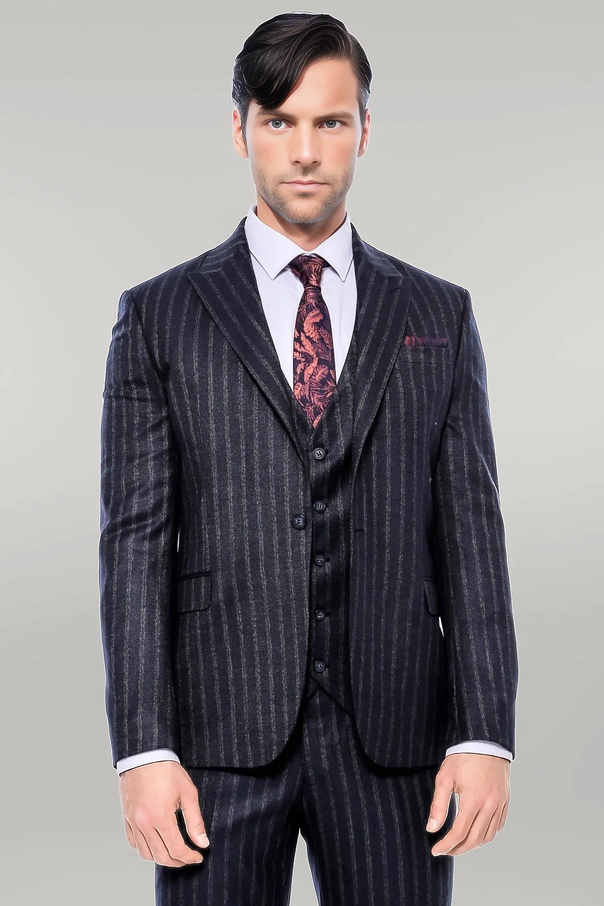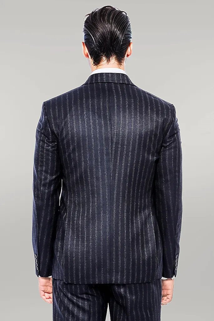 Navy Blue Striped Men's Vested Slim-Fit...