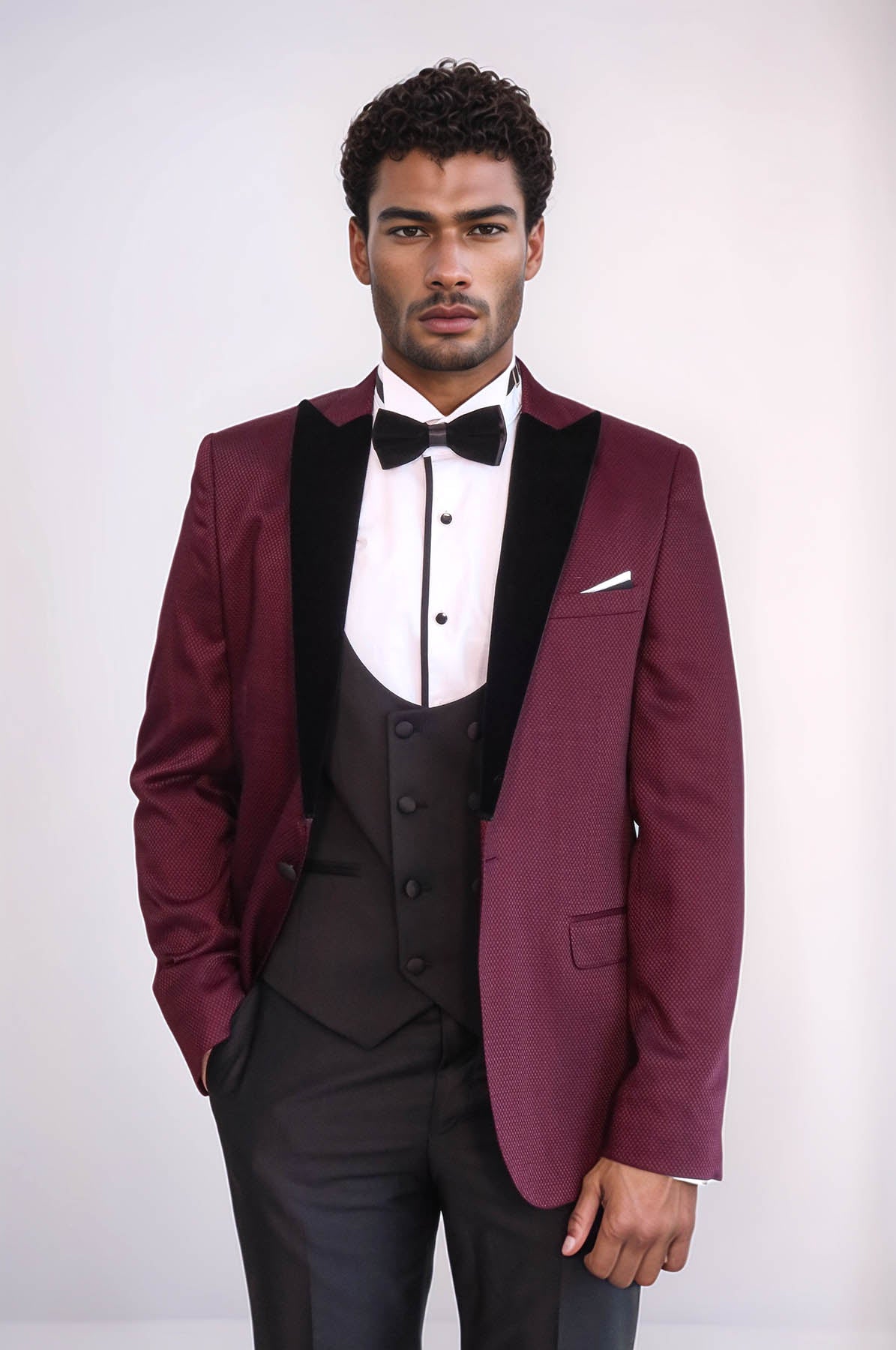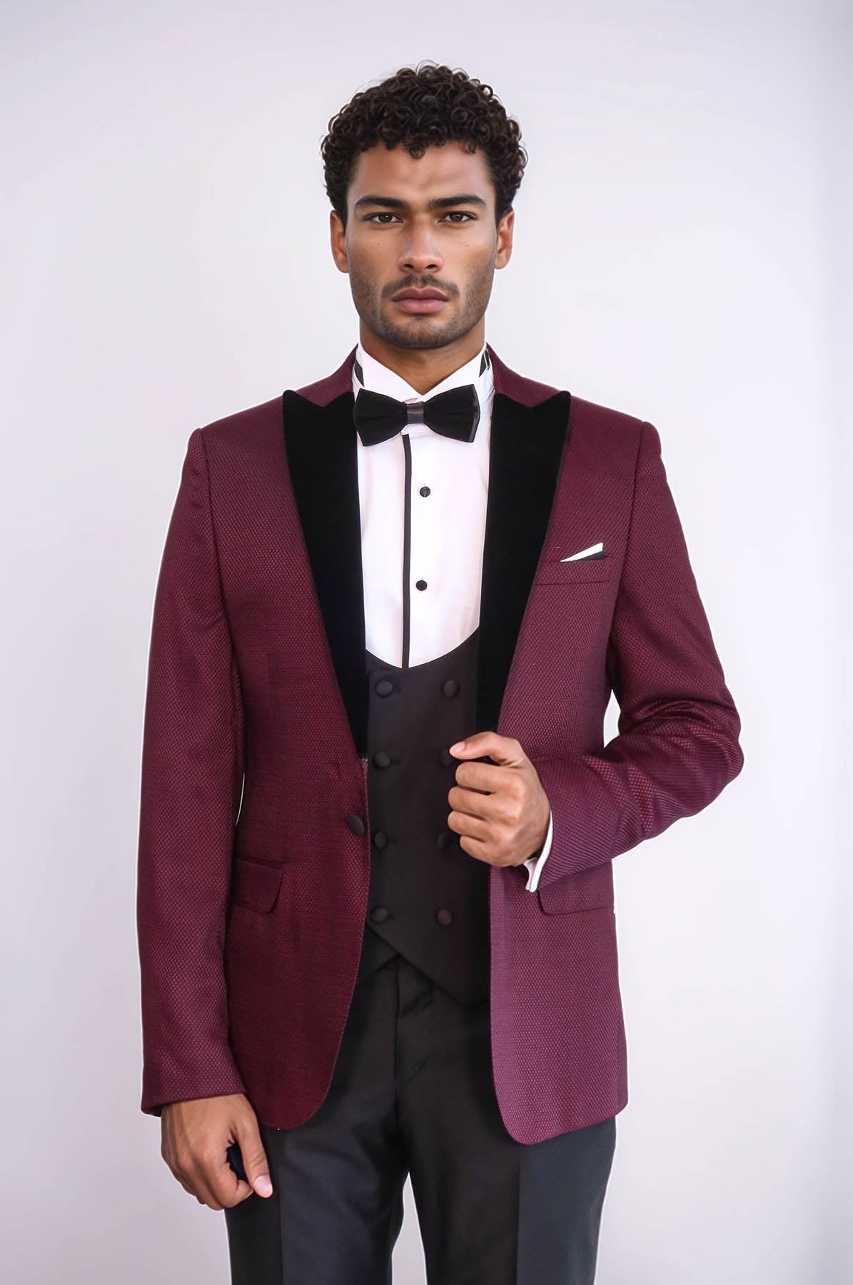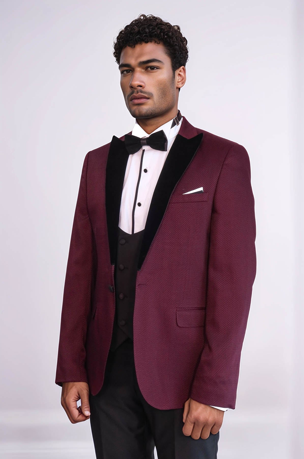 Patterned Blazer Plain Vest and Trousers...