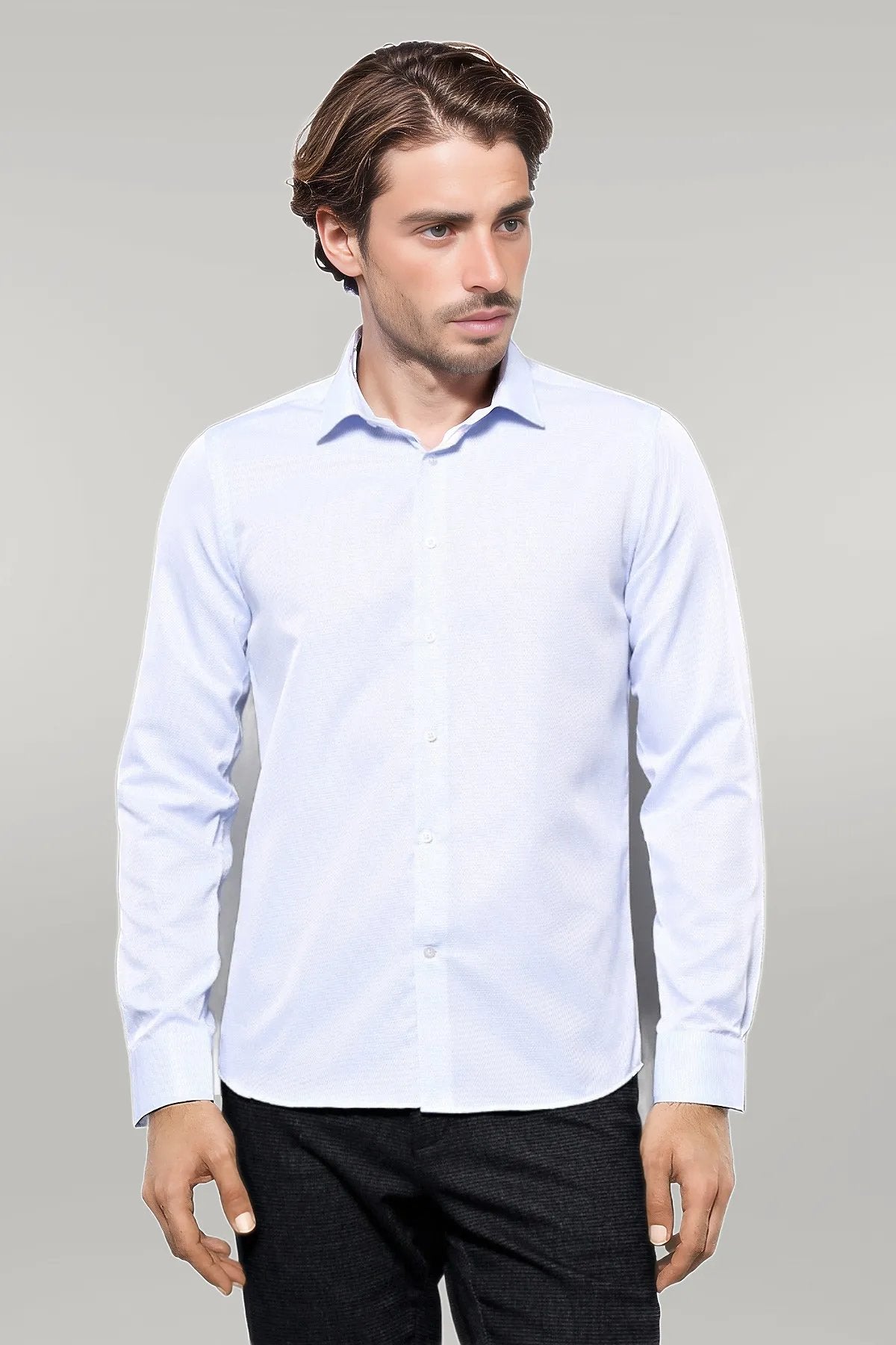 Patterned Casual Baby Blue Shirt |