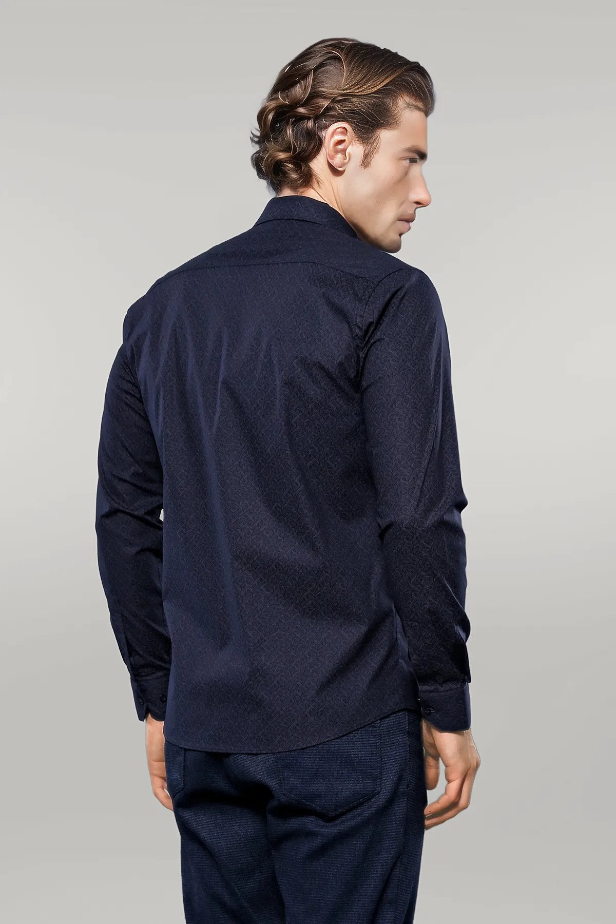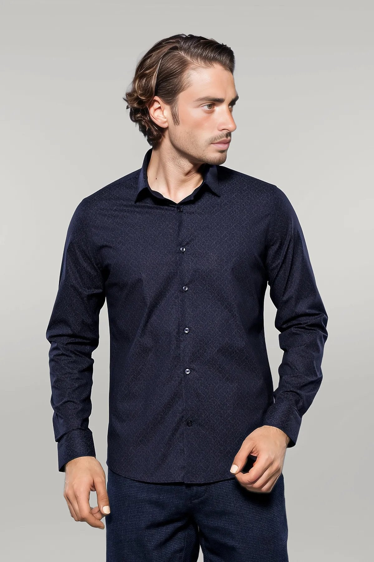 Patterned Navy Blue Men's Shirt