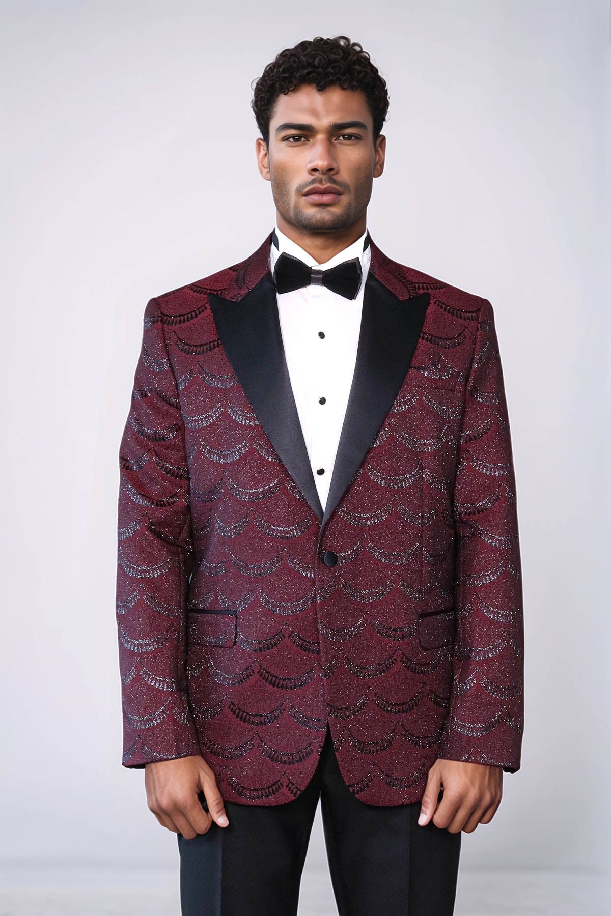 Patterned Slim Fit Burgundy Men Tuxedo...