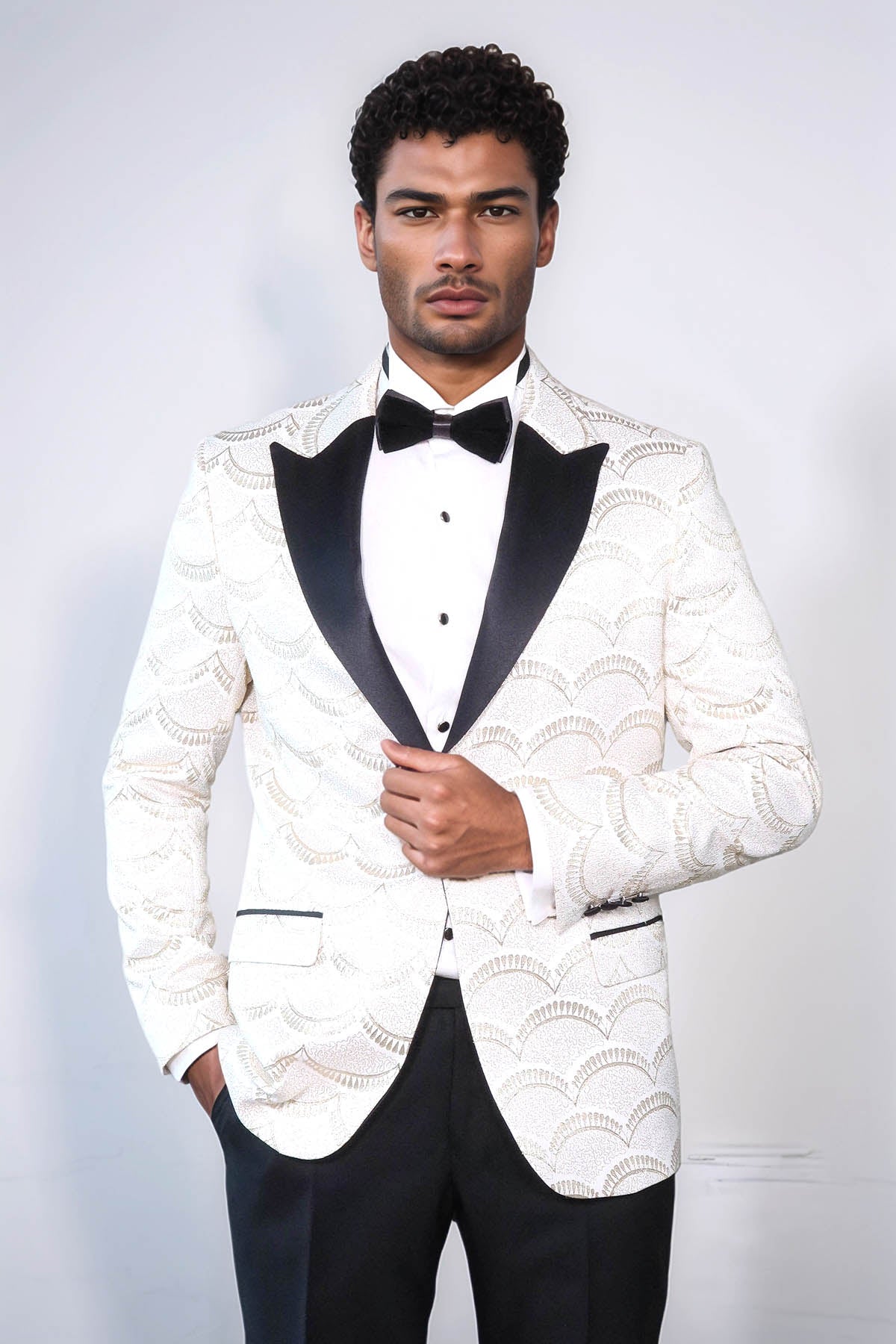 Patterned Slim Fit White Men Dinner...