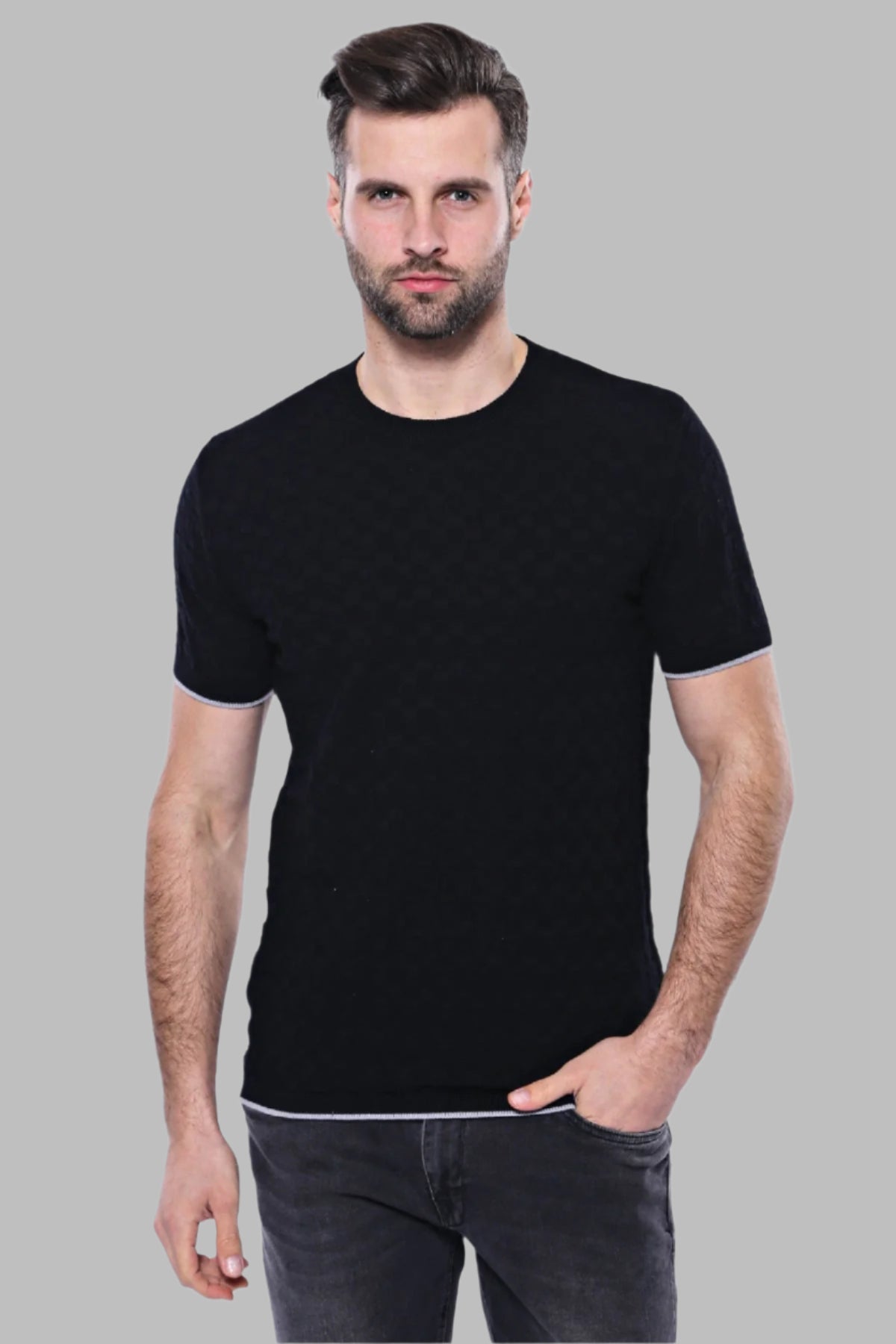 Patterned Tricot Knitted Black Men T-Shirt
