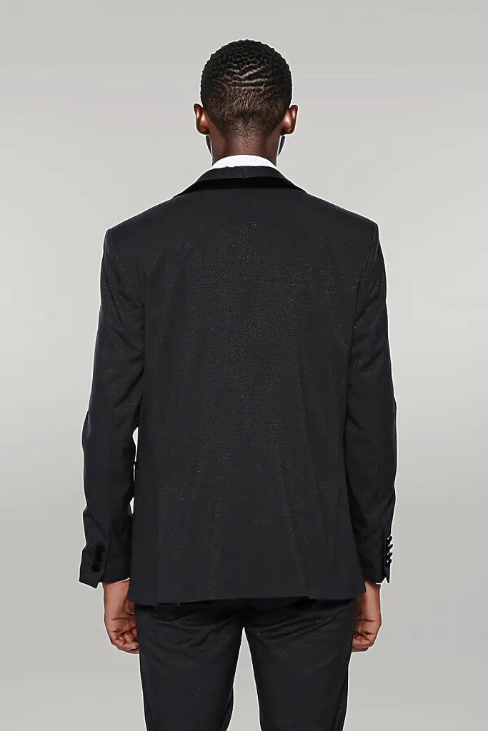 Patterned Velvet Lapel Black Men Tuxedo