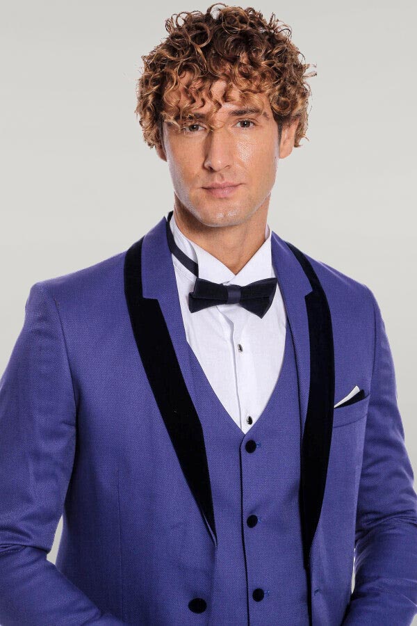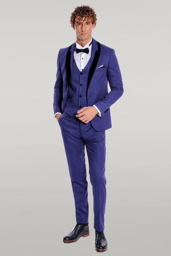 Patterned Velvet Lapel Blue Men Tuxedo