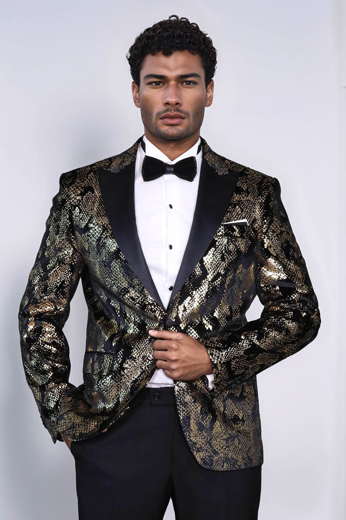 Peak Lapel Slim Fit Gold Patterned...