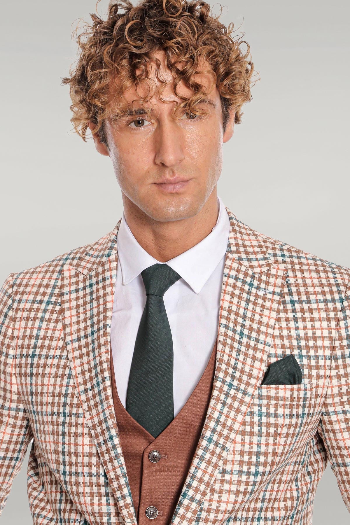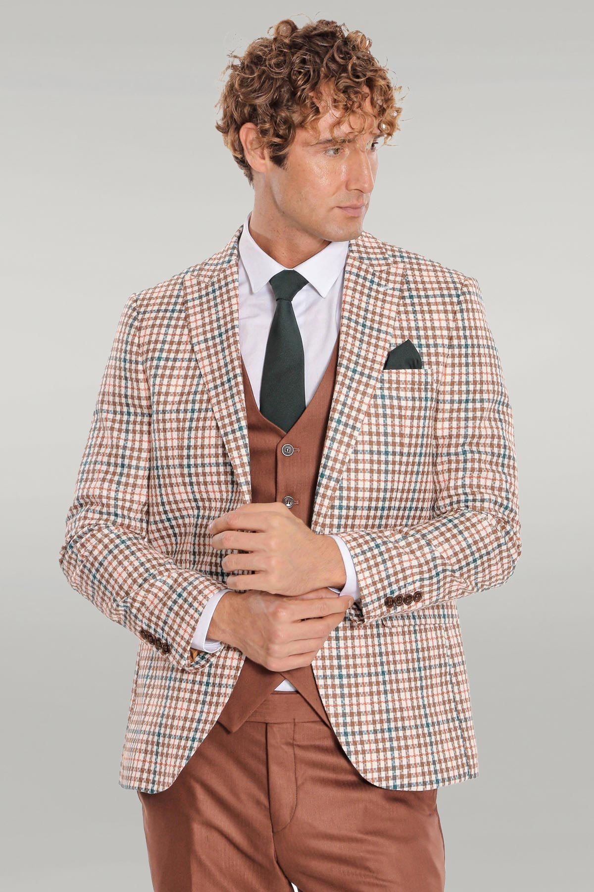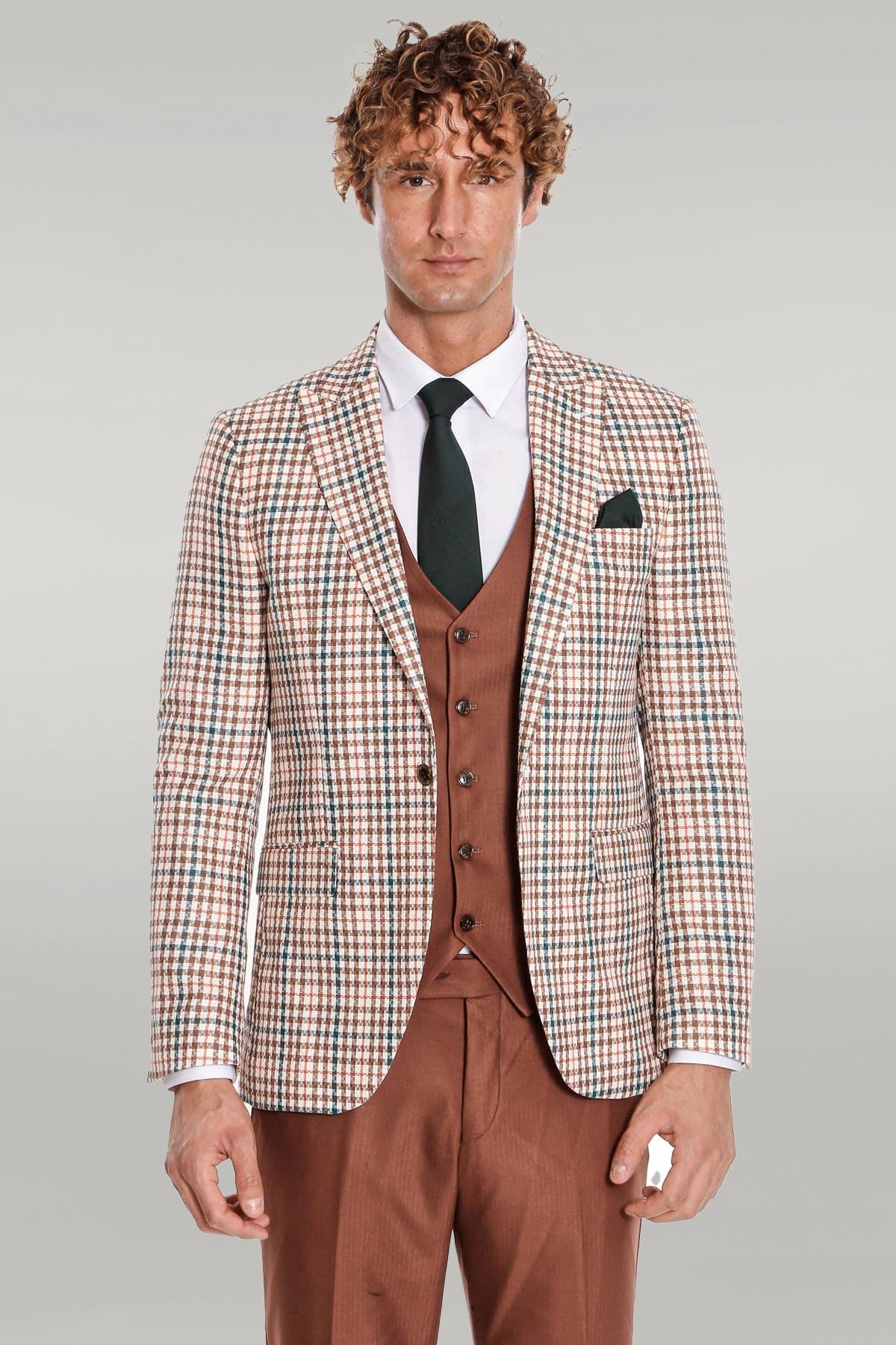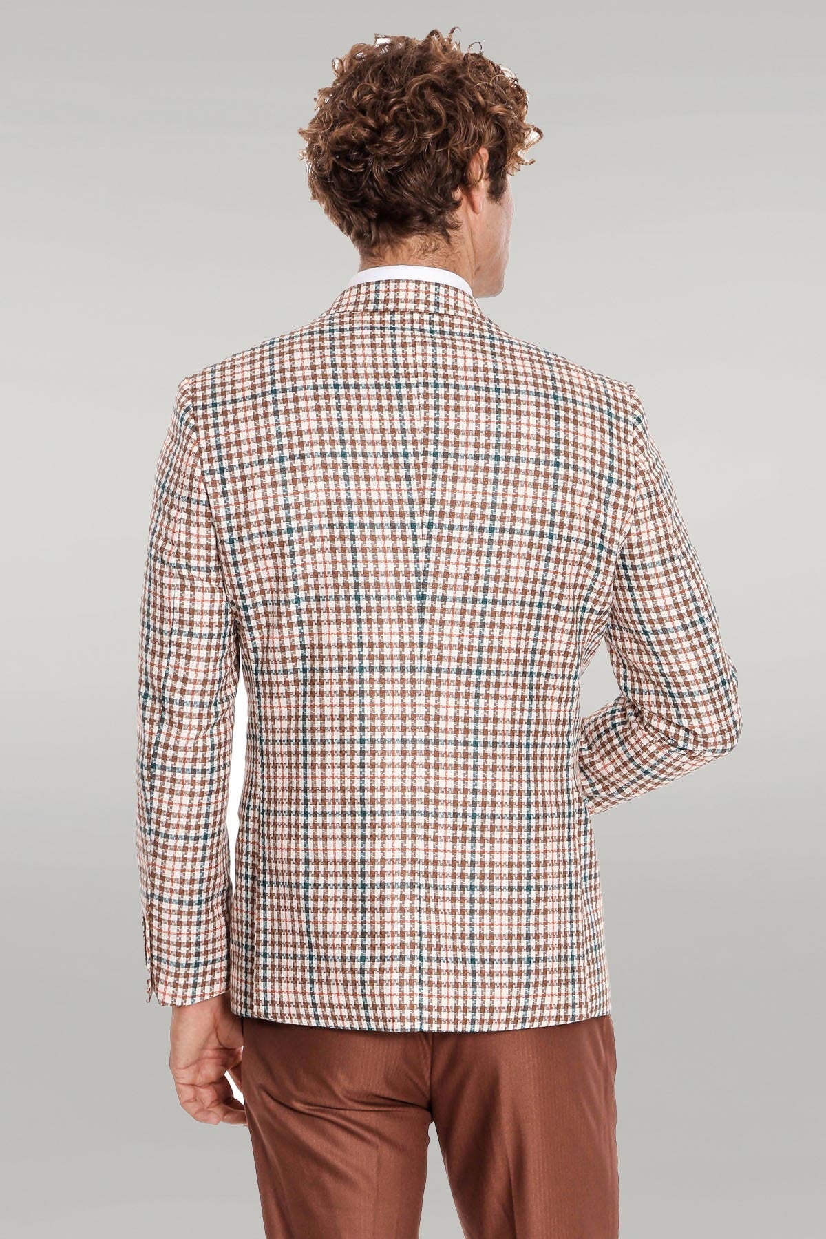 Plaid Brown Men Suit