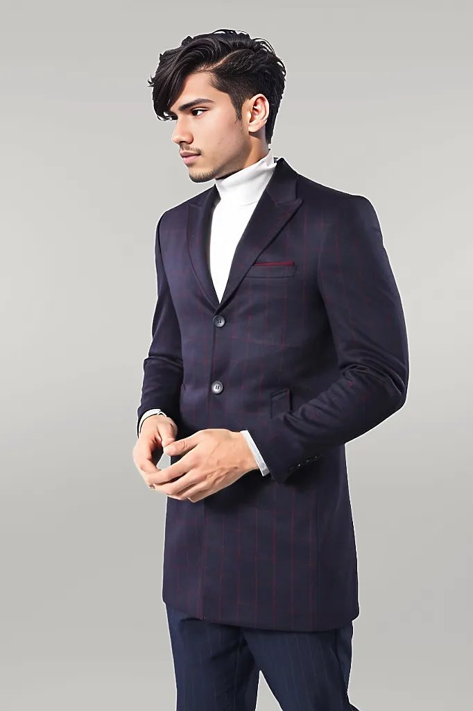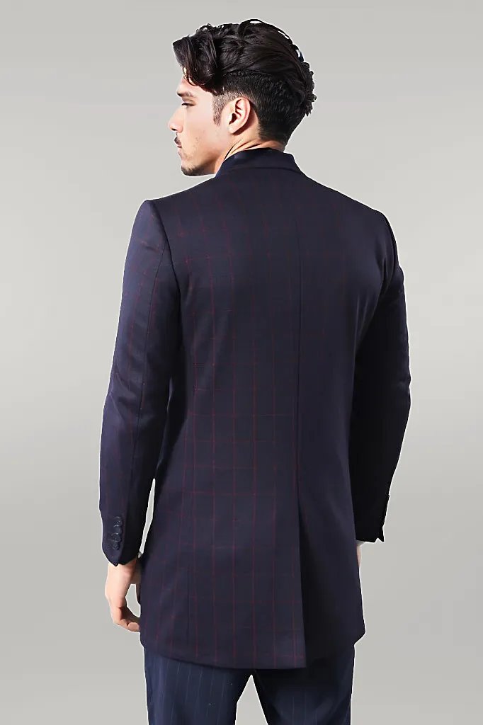 Plaid Navy Blue Men Coat