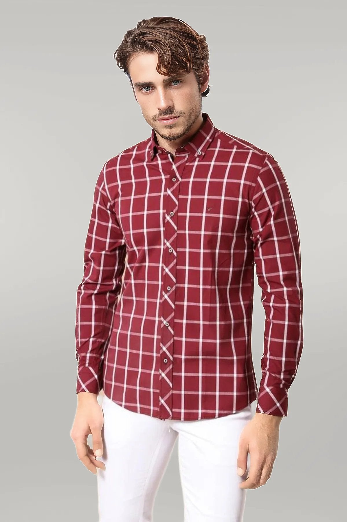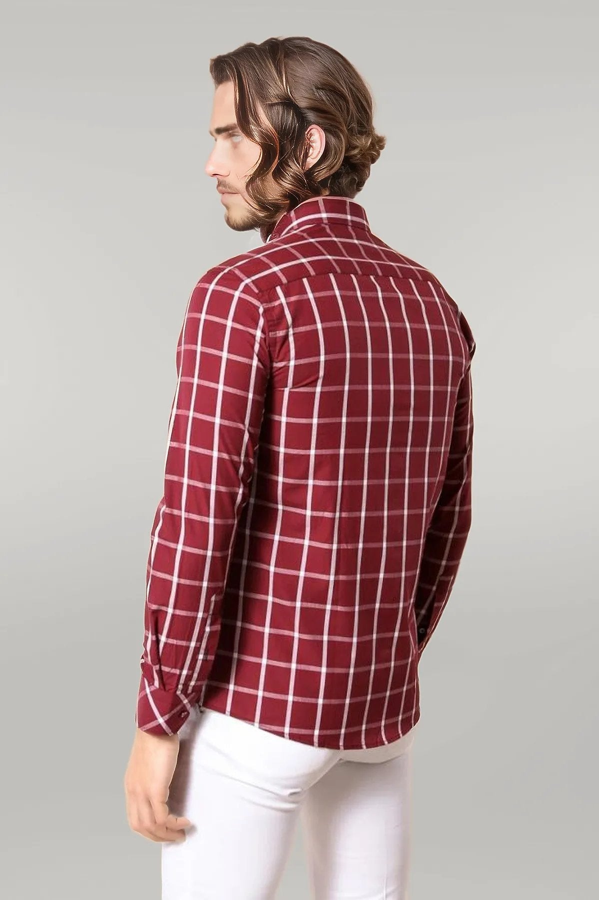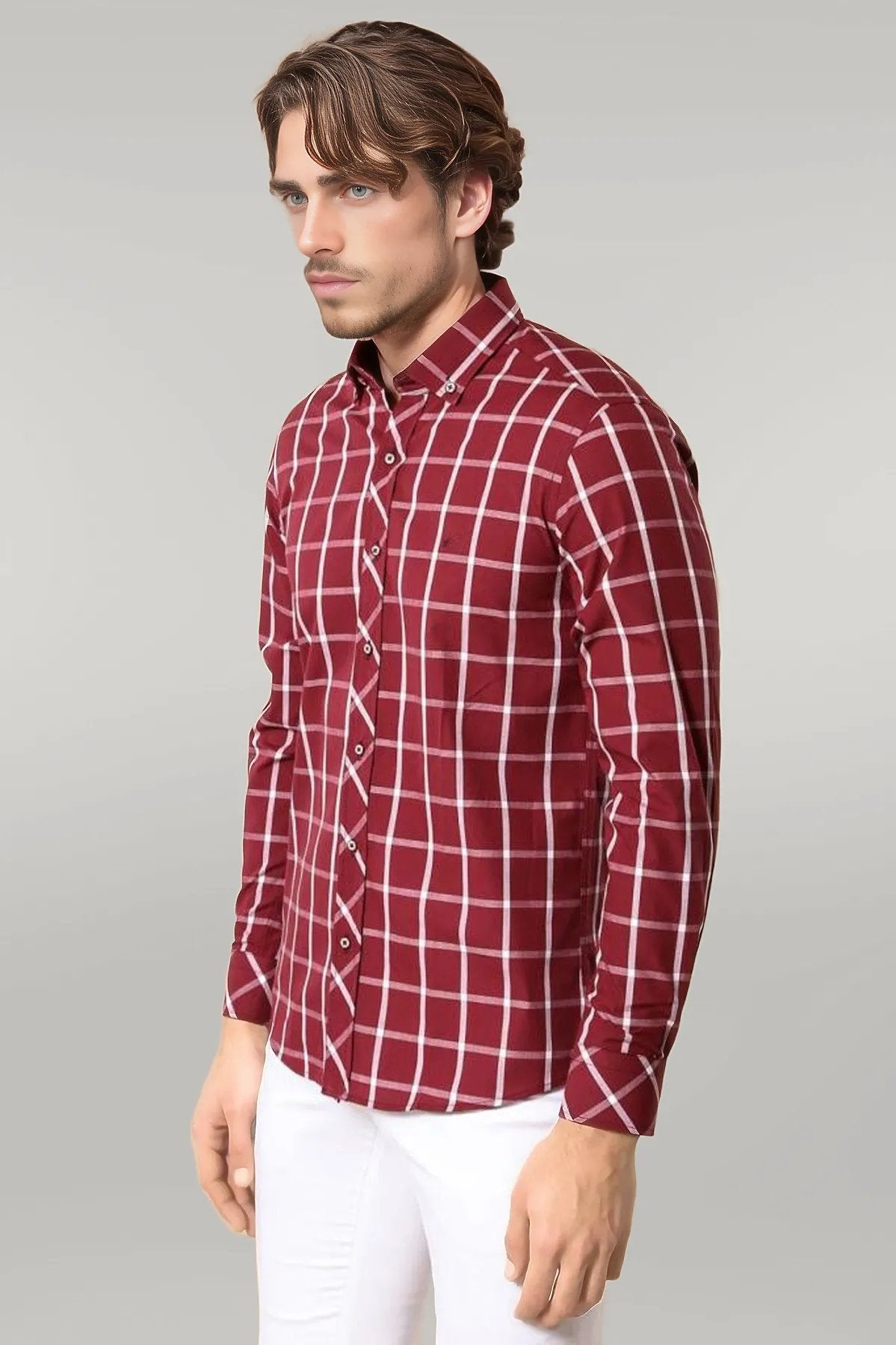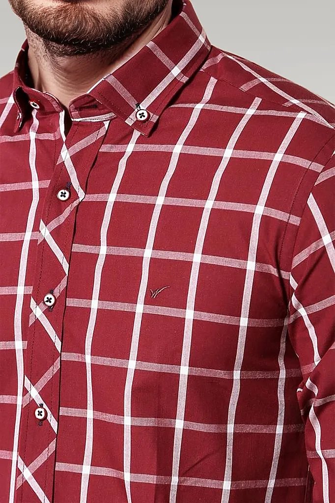 Plaid Slim Fit Burgundy Shirt