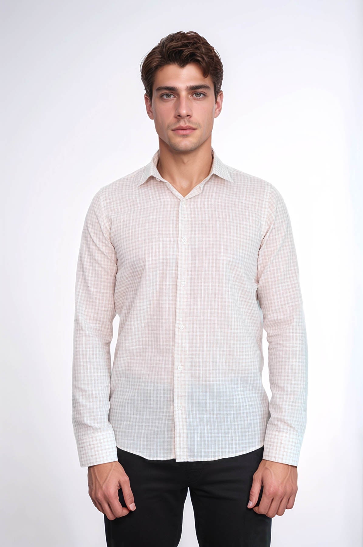 Plaid Slim Fit Light Brown Men...