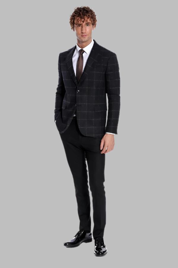 Plaid Wool Black Men Blazer