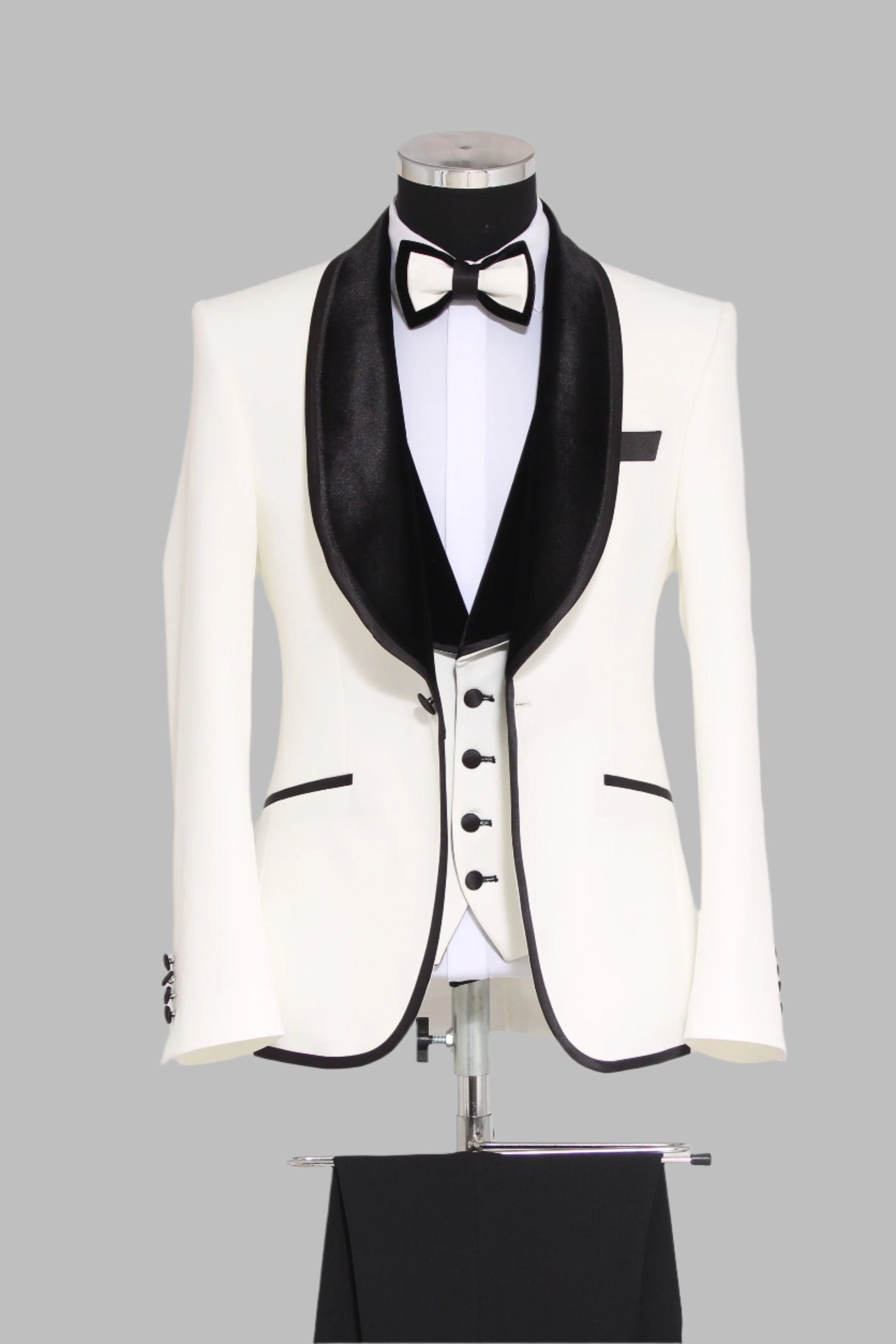 Plain 3-Piece Black Velvet Shawl Lapel...
