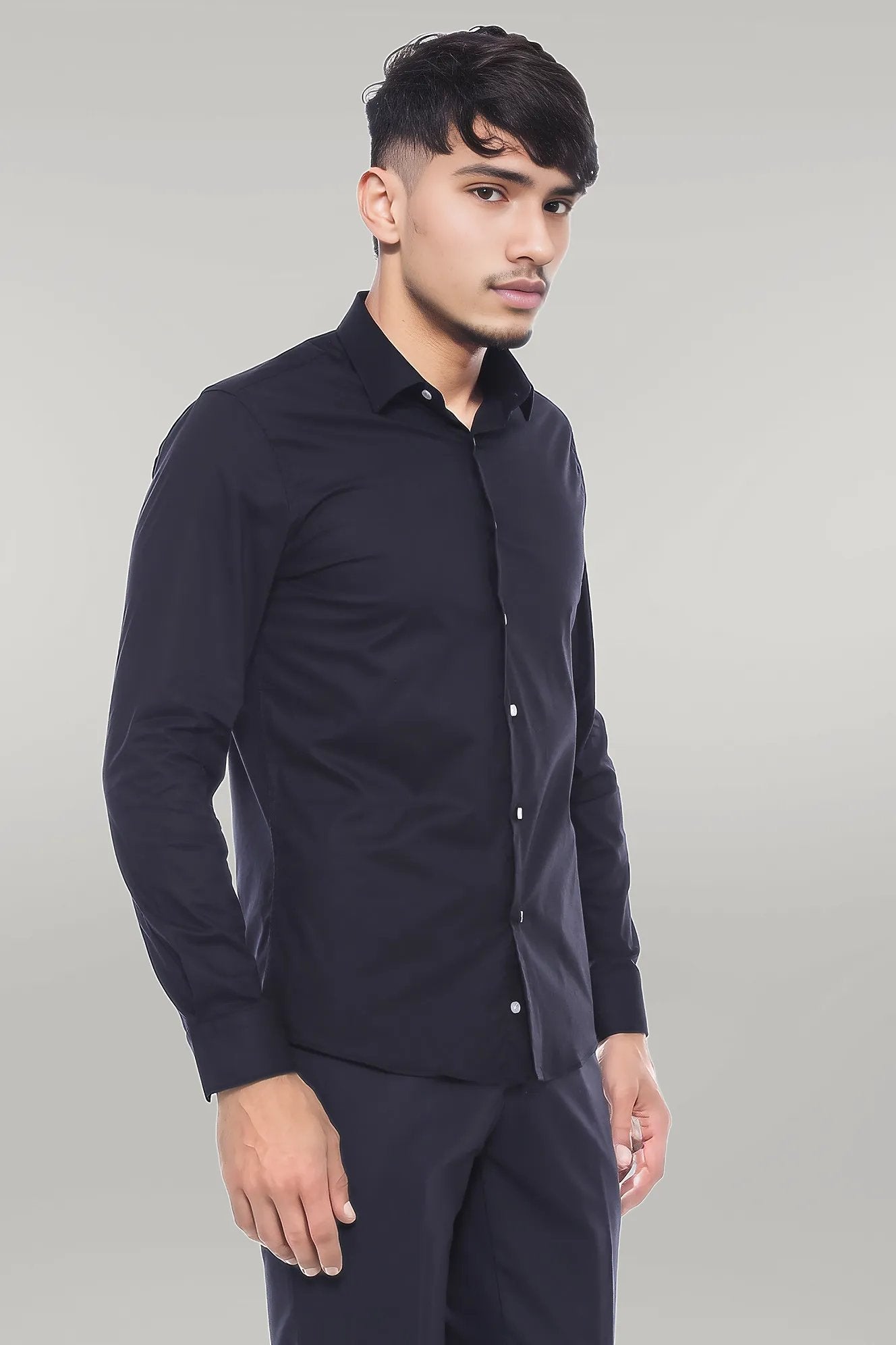 Plain Long Sleeves Regular Fit Black...