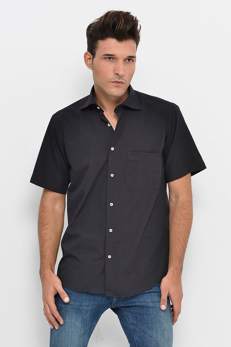 Plain Short Sleeves Black Men Shirt...