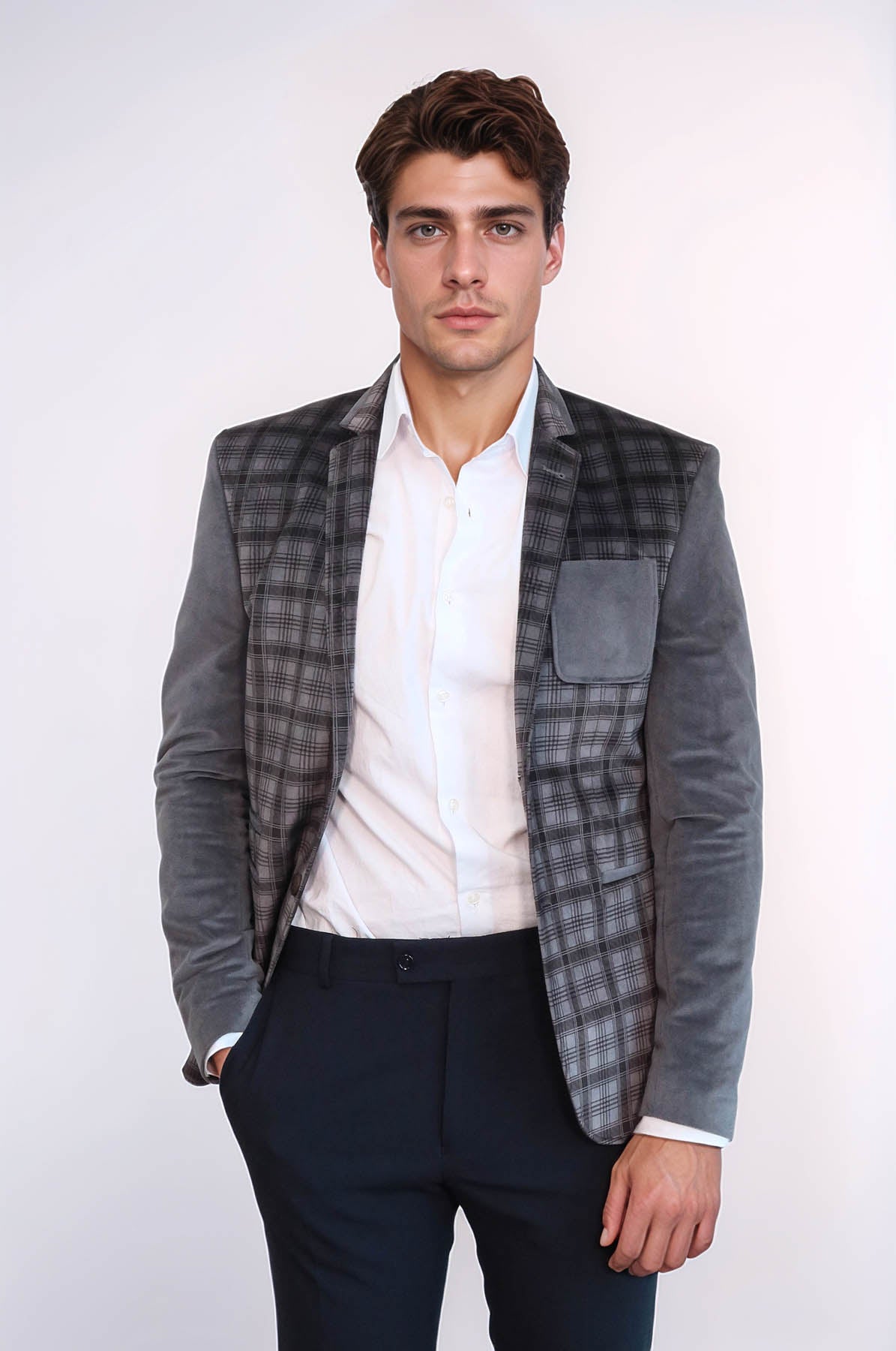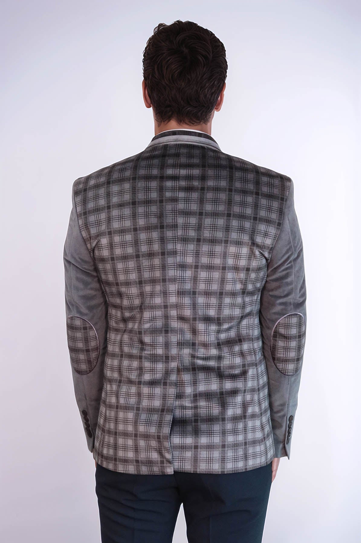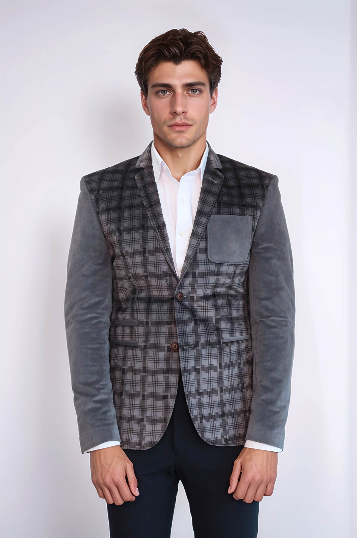 Plaid Sleeve Plaid Chest Smoked Velvet...