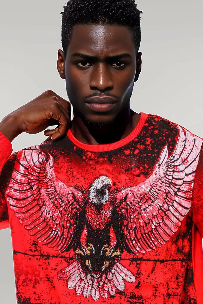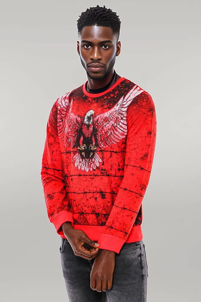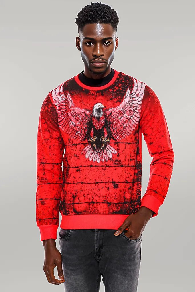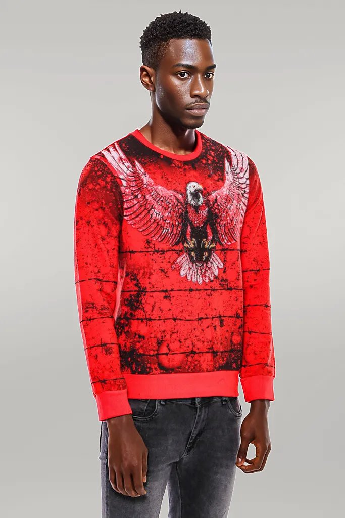 Red Eagle Patterned Slim Fit Sweatshirt