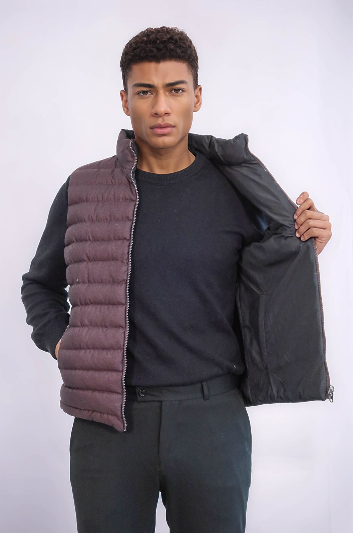Reversible Puffer Brown Men Down Vest