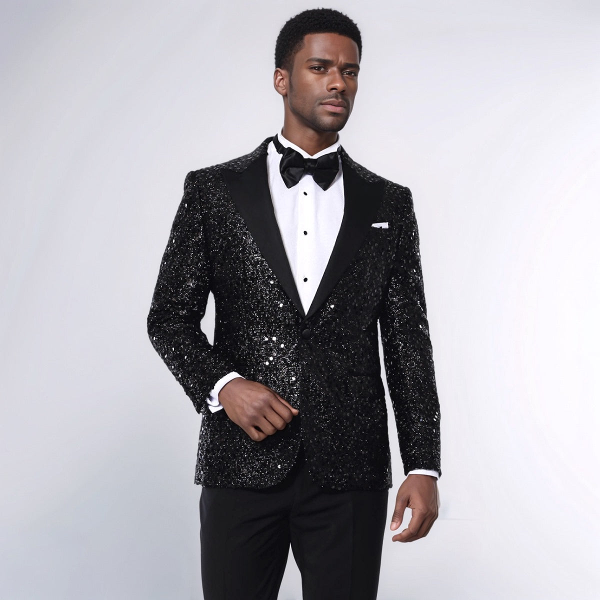 Sequin Patterned Black Party Blazer