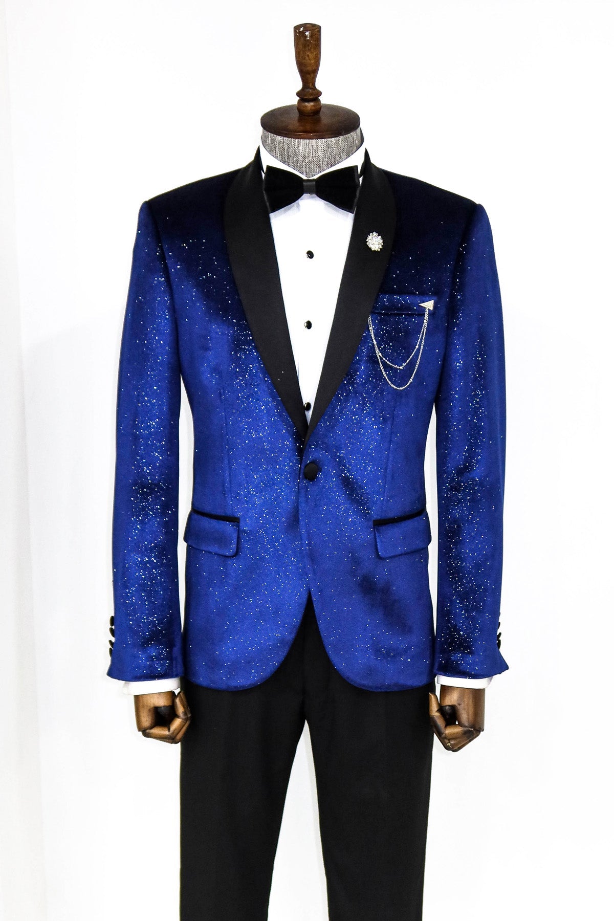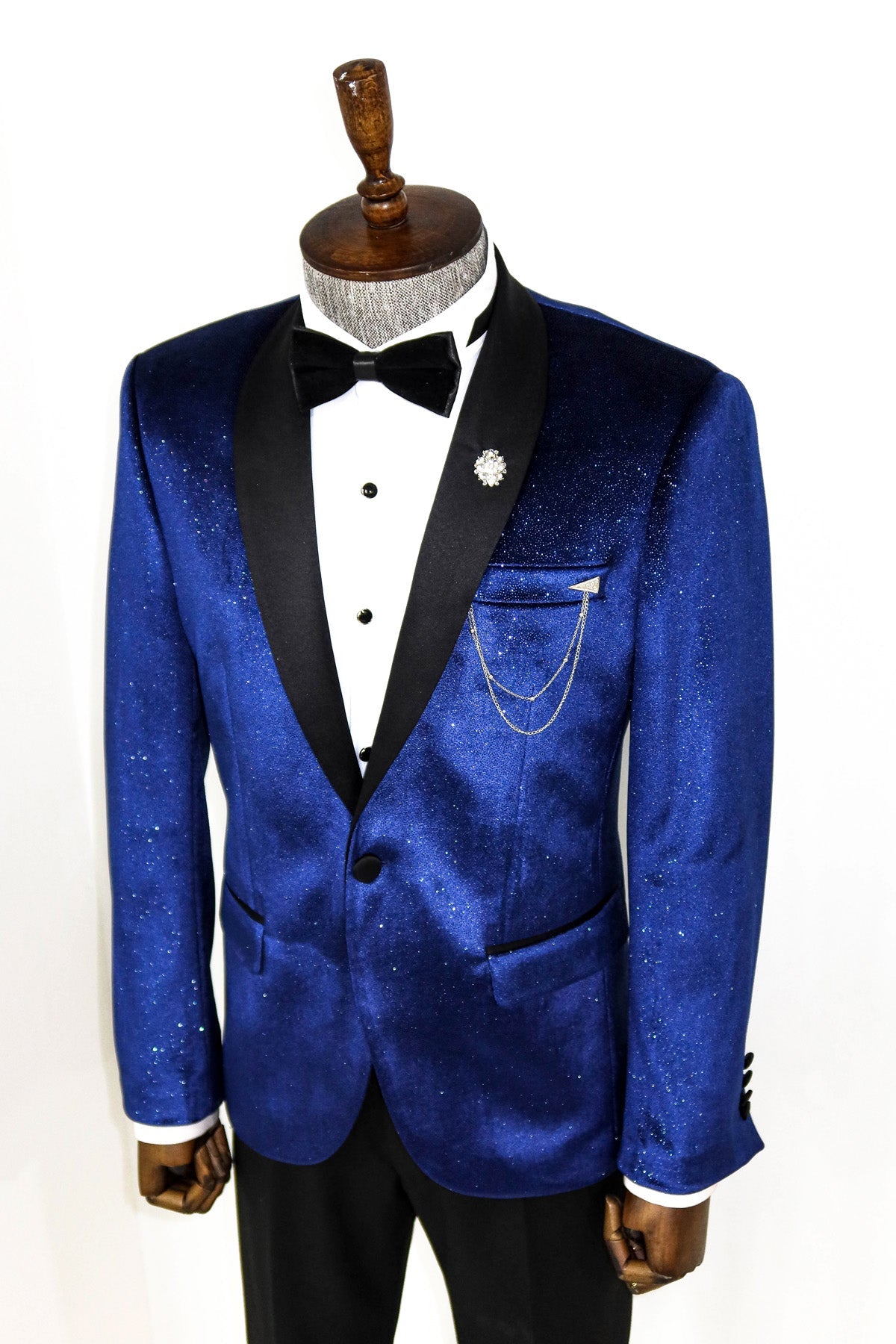 Shawl Collar Velvet Sax Blue Men...