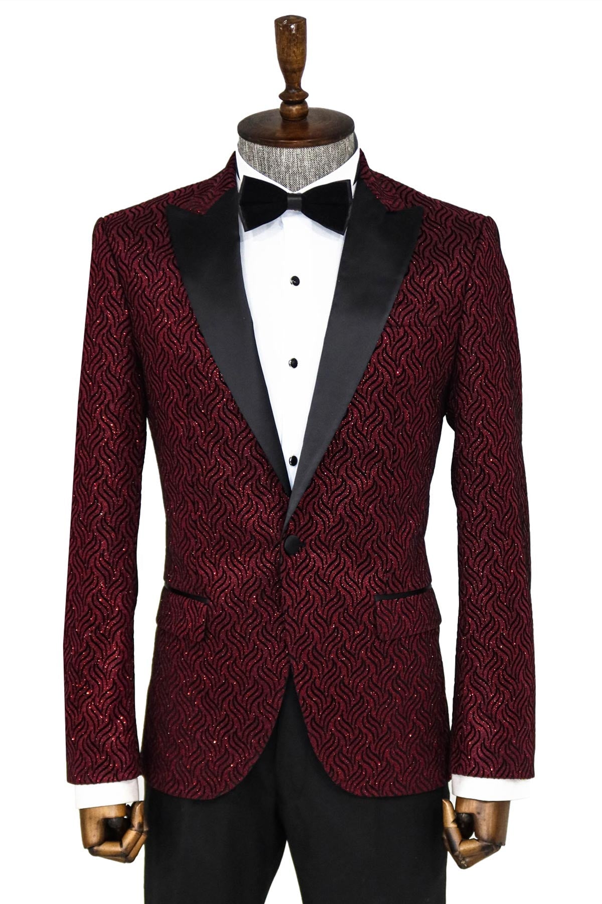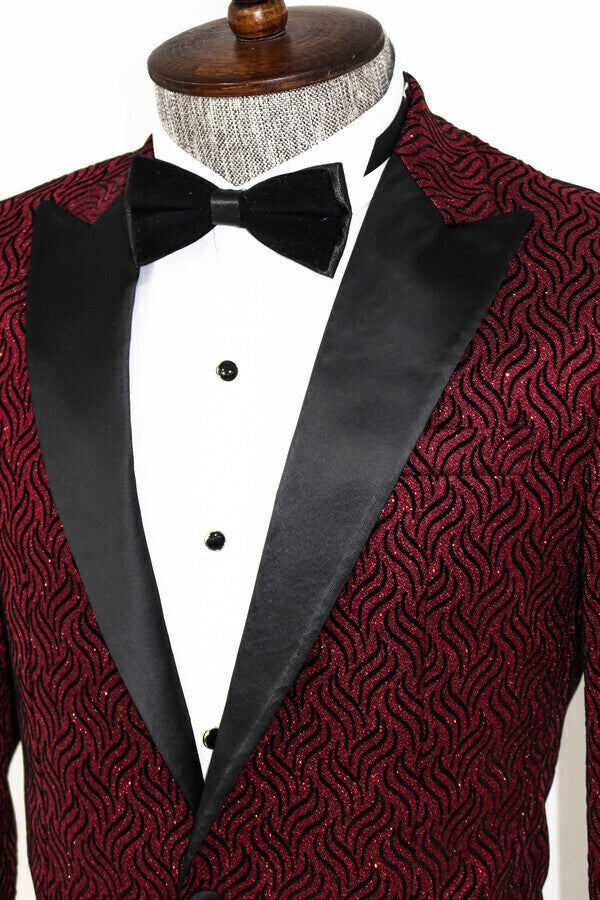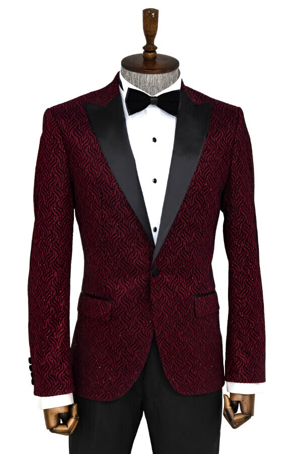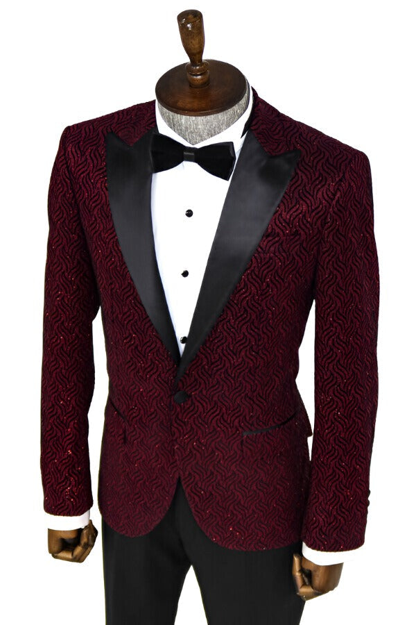 Shiny Patterned Burgundy Prom Blazer