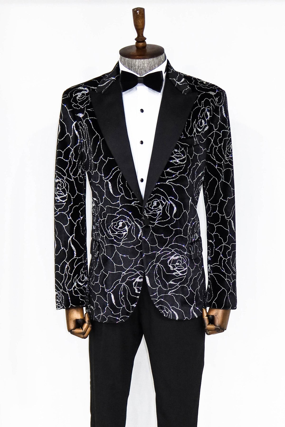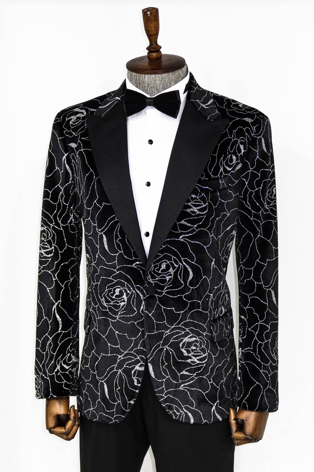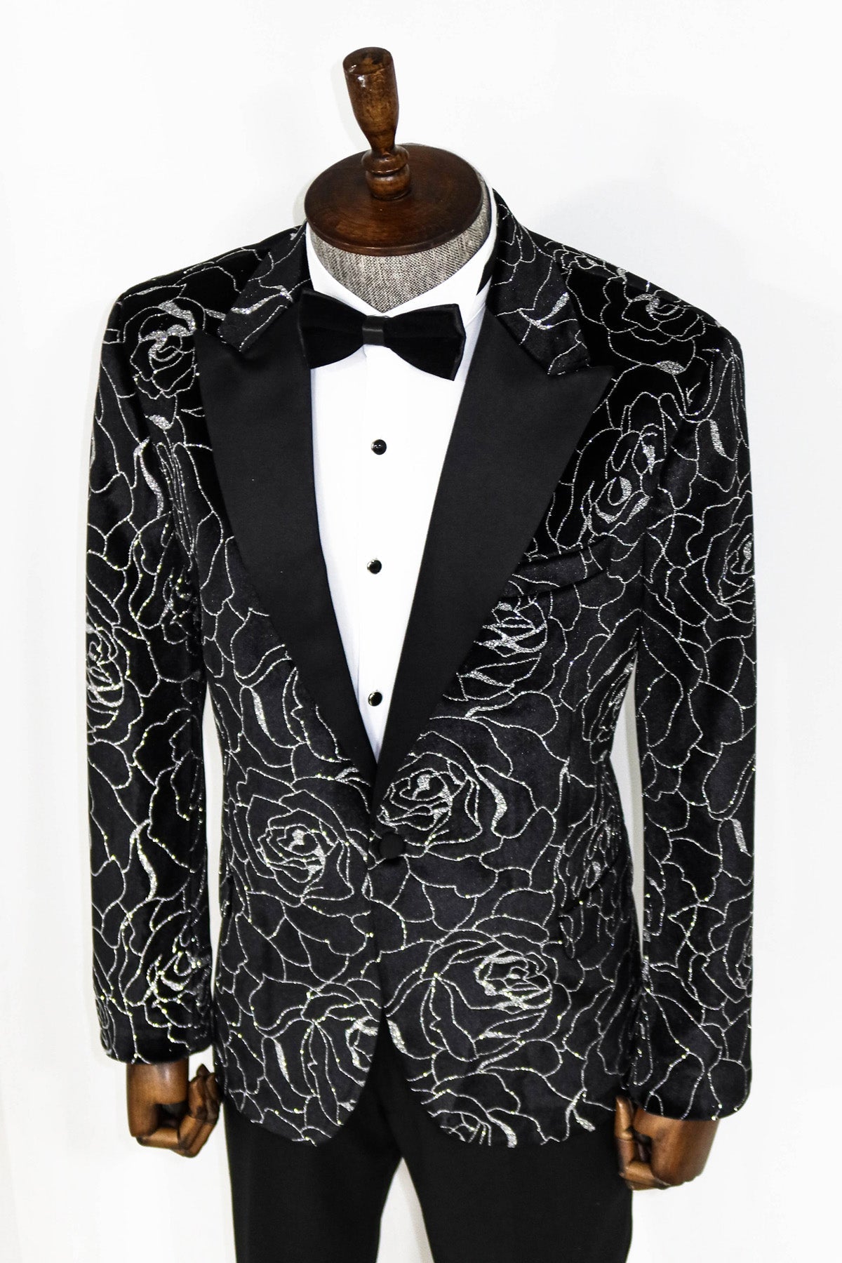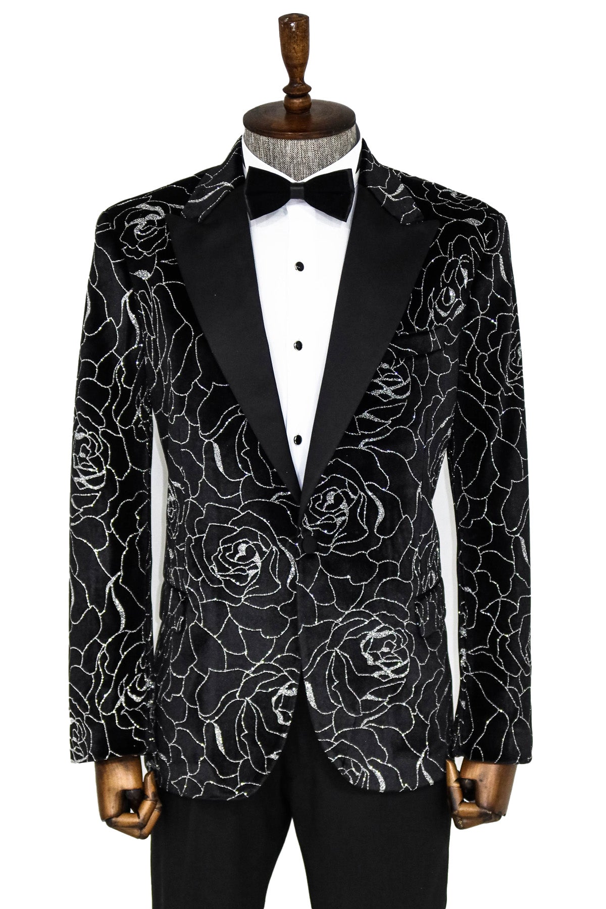 Silver Rose Patterned Over Green Velvet...