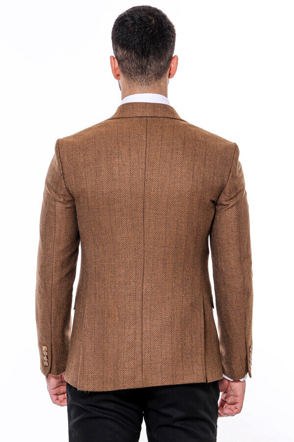Slim Fit Patterned Light Brown Men...